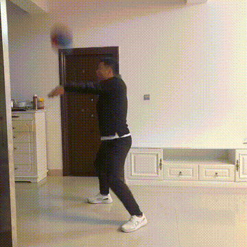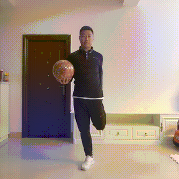 可以单手持球在手上完成练习,
