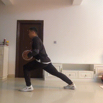 2、弓步跳运球。