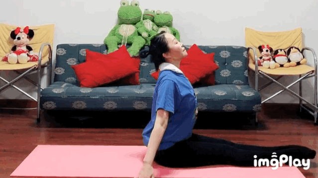 动作说明:第1-8拍身体前屈,双手触脚尖;第2-8拍成直角坐,同时肘关节触地支撑地面。