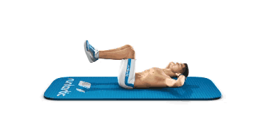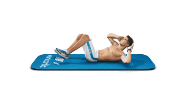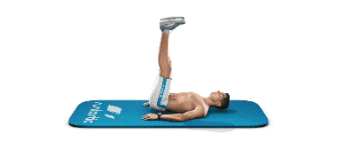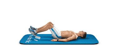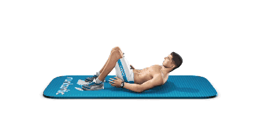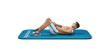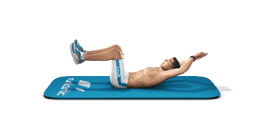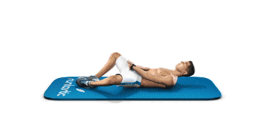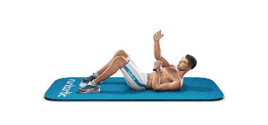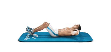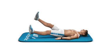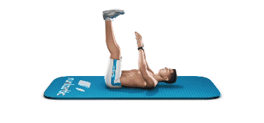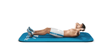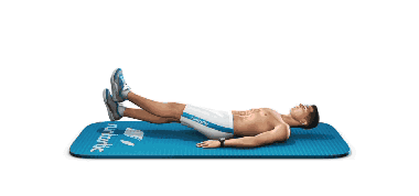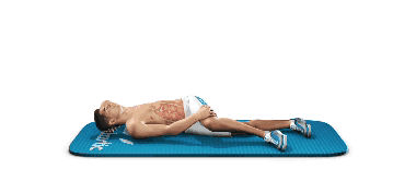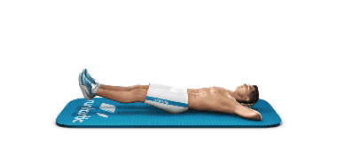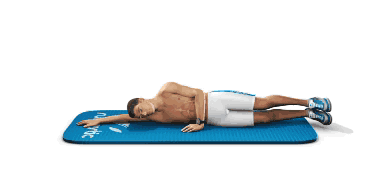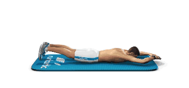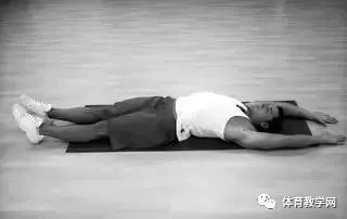平躺在瑜伽垫上,双腿并拢,脚尖向上,收紧腹部,双手臂伸直并拢在一起,向头的方向打开,直到在头的后贴住地为止。