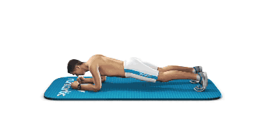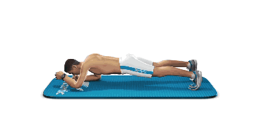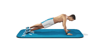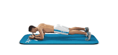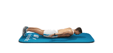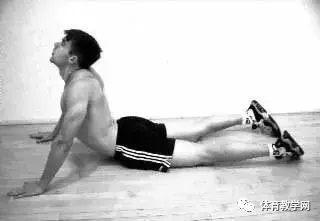 髋部、大腿的股四头肌、膝盖、小腿、脚背完全紧贴地面,双手臂放于胸肌下方伸直将上半身撑起,收紧腹部。