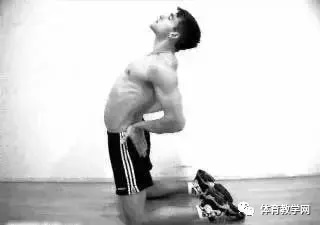 跪与瑜伽垫上,双腿打开,膝盖和小腿紧贴地面以支撑身体,双手叉在腰部后方稳定住腰部,上半身适当的向后伸展,收紧腹部。