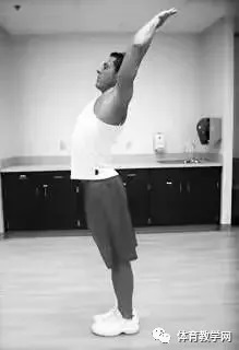 动作基本上与躺姿拉伸类似,只不过是站着,同时因为腰部没有了着力点,所以可以适当的向后伸展。