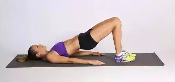 动作要领:仰卧垫上,两脚自然分开,屈膝,双手抓脚踝,尽量抬高臀部、背部。