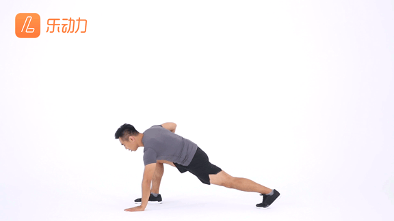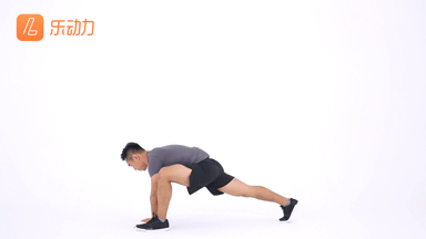 Step 1. 预备姿势如弓步,右脚向前迈出一大步,接着俯身将左手手掌触地,重心放于左手和右脚。