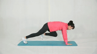 俯卧撑姿势预备,用爆发力交替腿的位置像原地登山跑一样,过程中注意保持身体稳定。