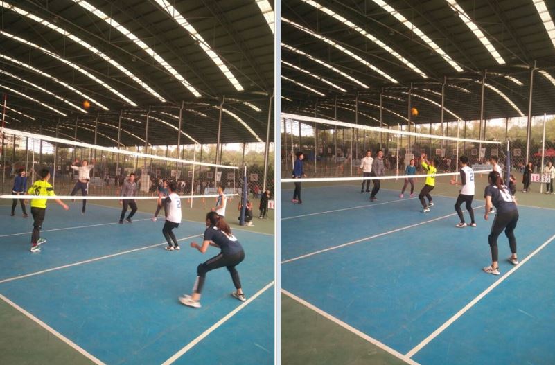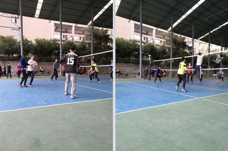半场过后易变再战,双方各有换人,教师这边郑秋红老师替换上了吴秀云老师。更换场地之后,教师们重振旗鼓,接连成功地完成扣杀,拦网成功率也不断提升,把分差一度缩小到了5分。但随着比赛进入尾声,教师们没能保持住强烈进攻的势头,被校队一轮连胜把比分定格在了38-45。