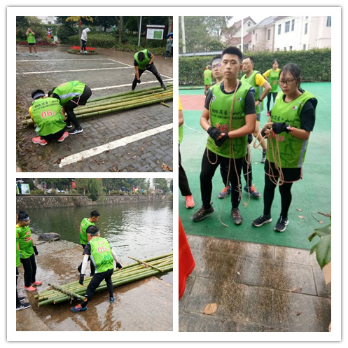 第二天进行的是18.8公里的越野跑,2.5公里的扎筏泅渡和漂流、2公里的越野跑、拓展项目。扎筏泅渡要求选手在最短的时间内用8根毛竹扎成竹筏,四人一起泅渡近2公里的开放水域。每一个比赛项目大家都彼此加油、相互的鼓励,尽管困难重重,依然选择披荆斩棘,勇往直前,这就是我校“完满教育”竞技体育的精神和力量。