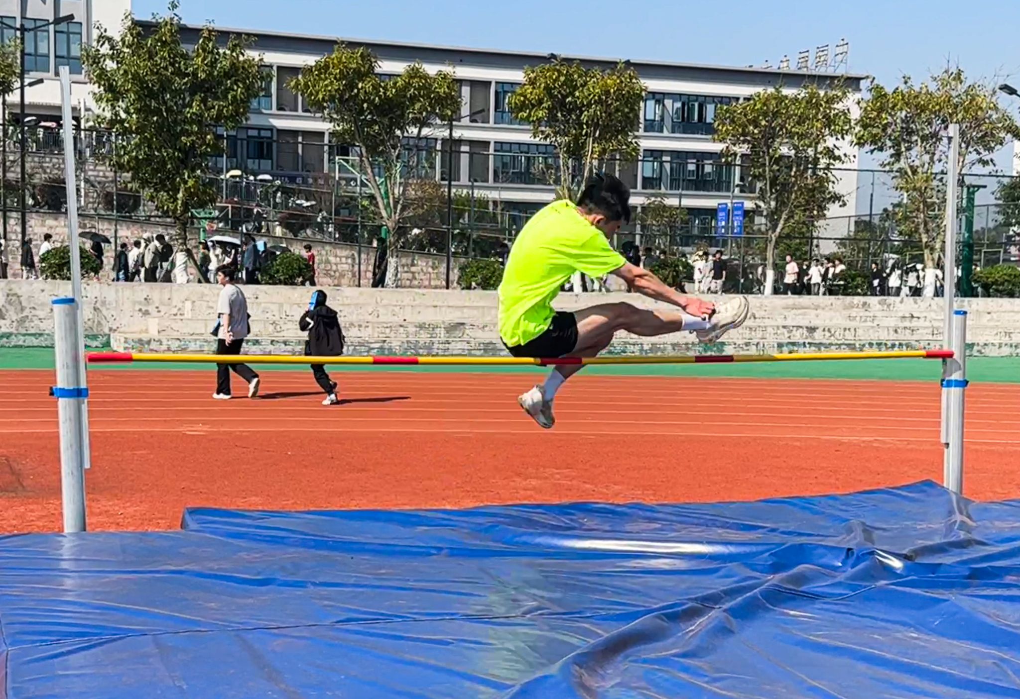 田赛赛场化身为力量与技巧的终极考场,急行跳远、跳高、铅球三大项目以独特的美学语言,书写着移通学子挑战极限的青春诗篇。助跑道上,运动员们猎豹般疾驰,在起跳板前精准踏跃,腾空瞬间身体舒展如弓,这是力量控制与空间感知的绝妙平衡。跳高场上的每一次抬杆都是对地心引力的浪漫宣战,肩背轻擦横杆却未掉落,诠释了“毫米级精度”的竞技美学。铅球区轰鸣阵阵,那是力量与技巧的完美融合,是“力与美”的辩证哲学。