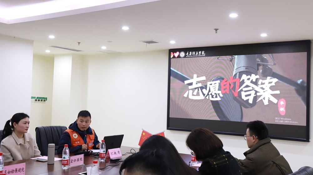 人文科技学院、宏仁医院、人民医院以及重庆移通学院田威老师分别进行经验分享,涵盖高校、医院等多方面的志愿服务工作。