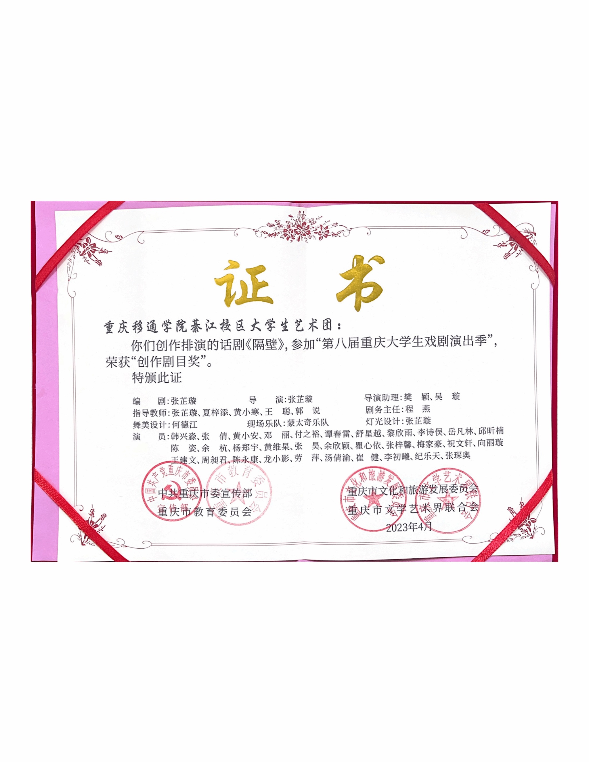 我校获奖2023年第八届重庆大学生戏剧演出季