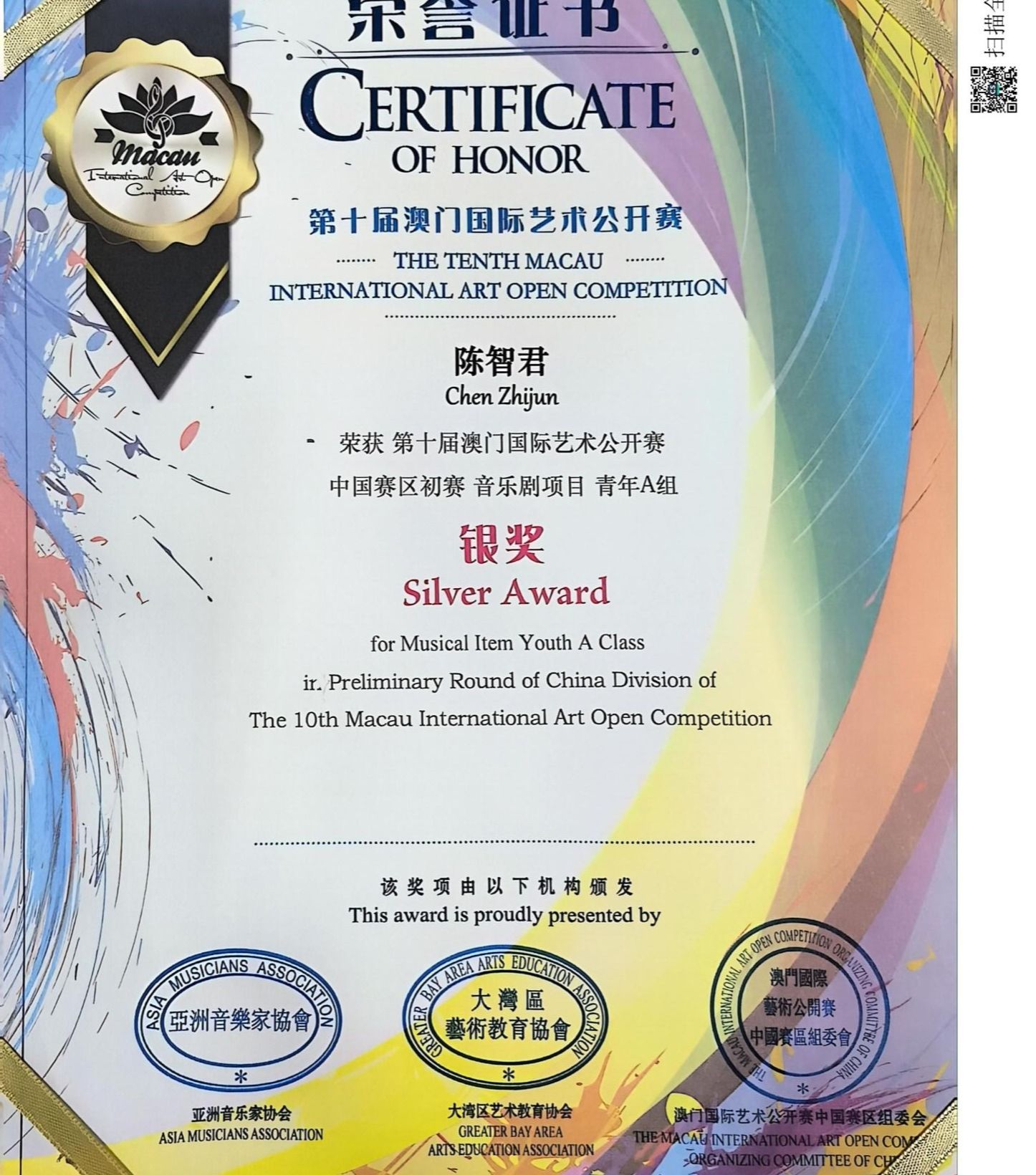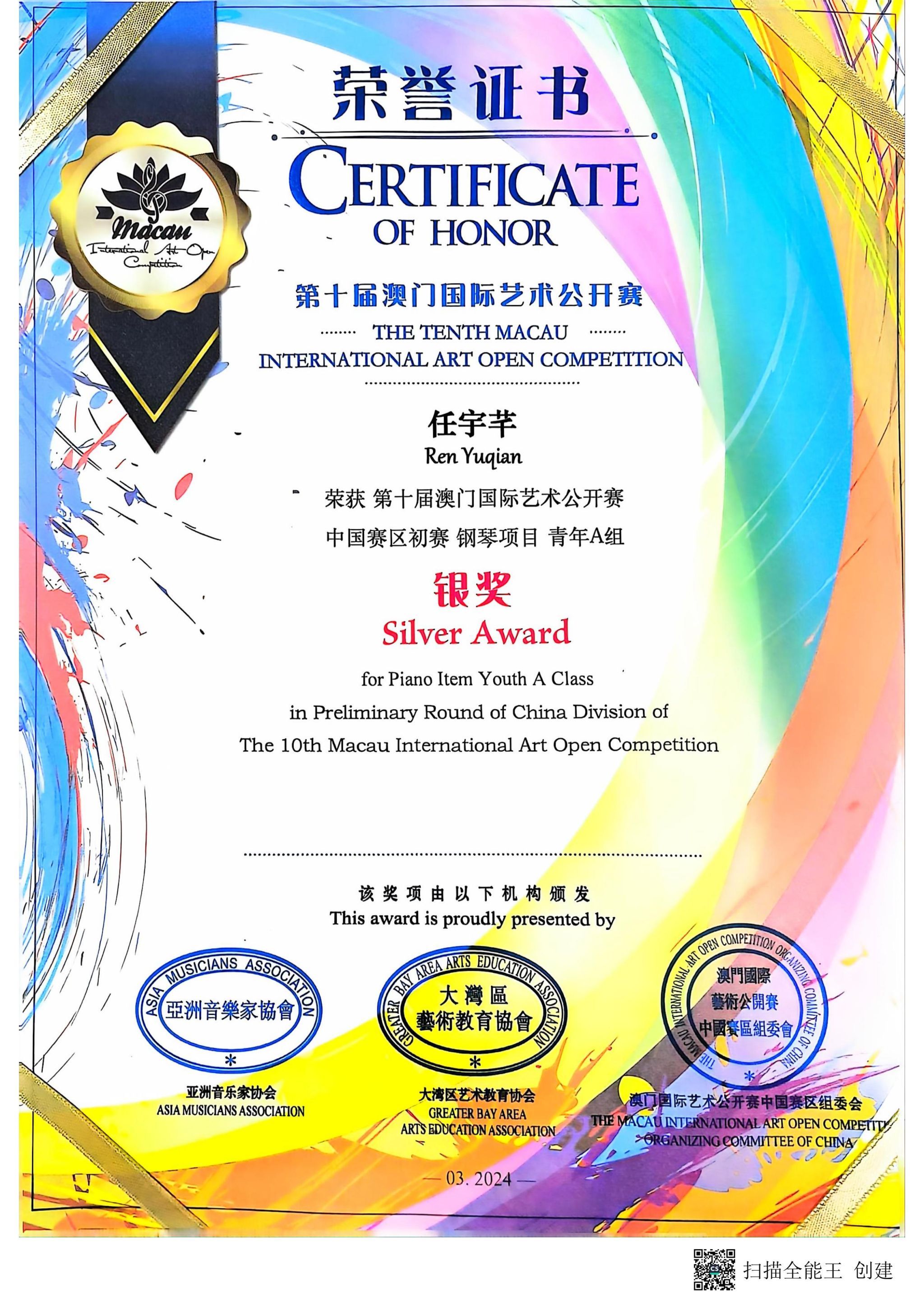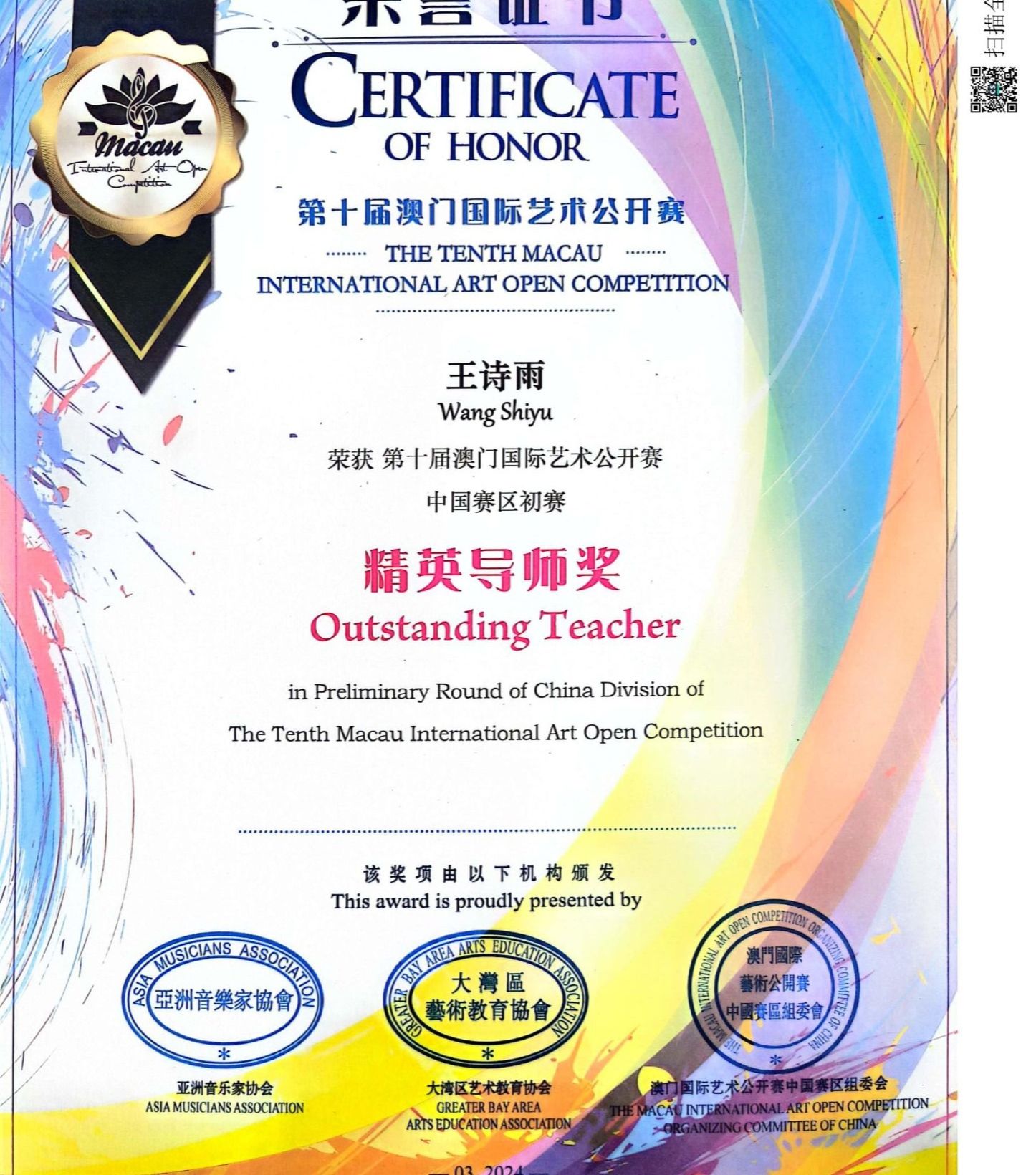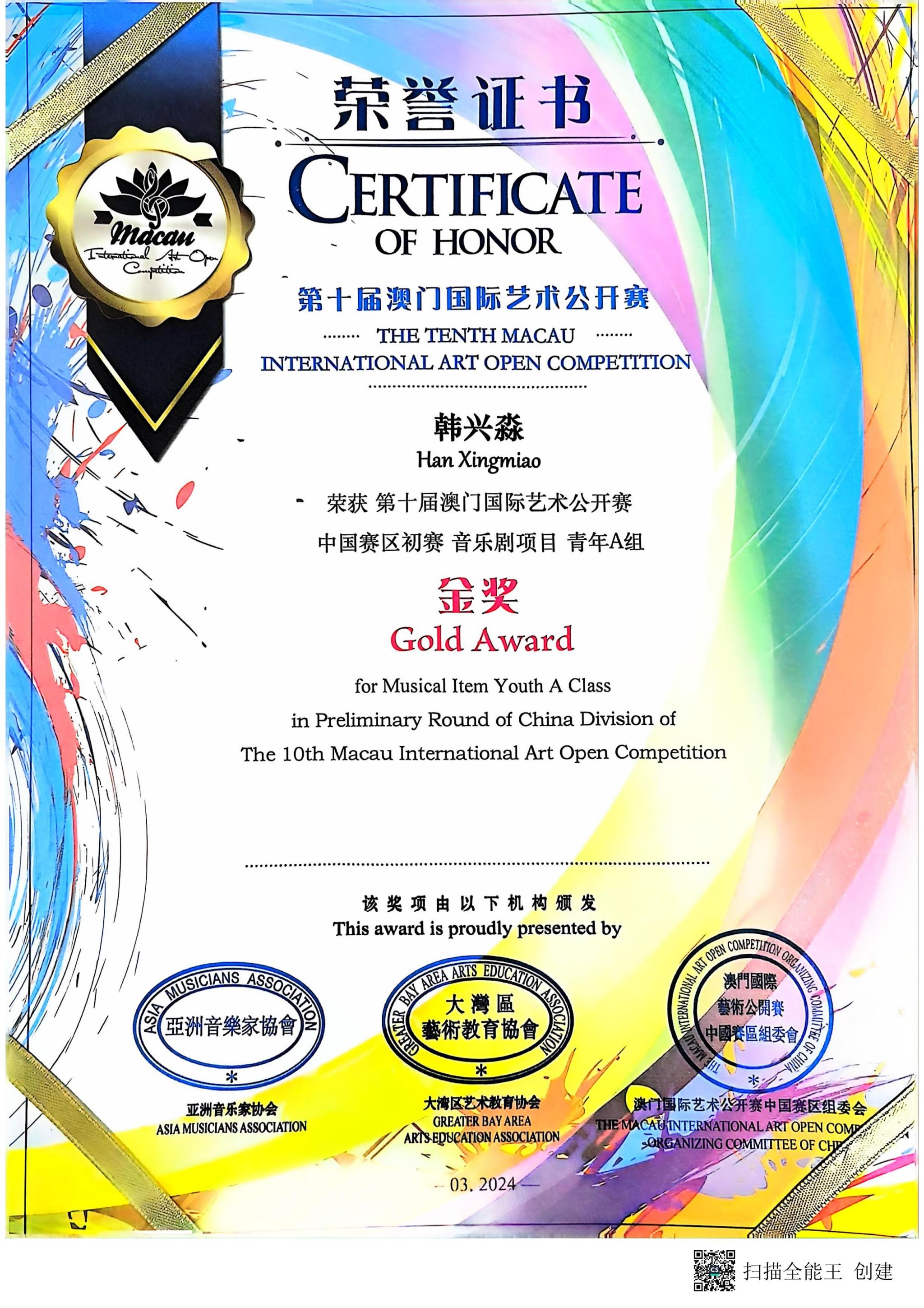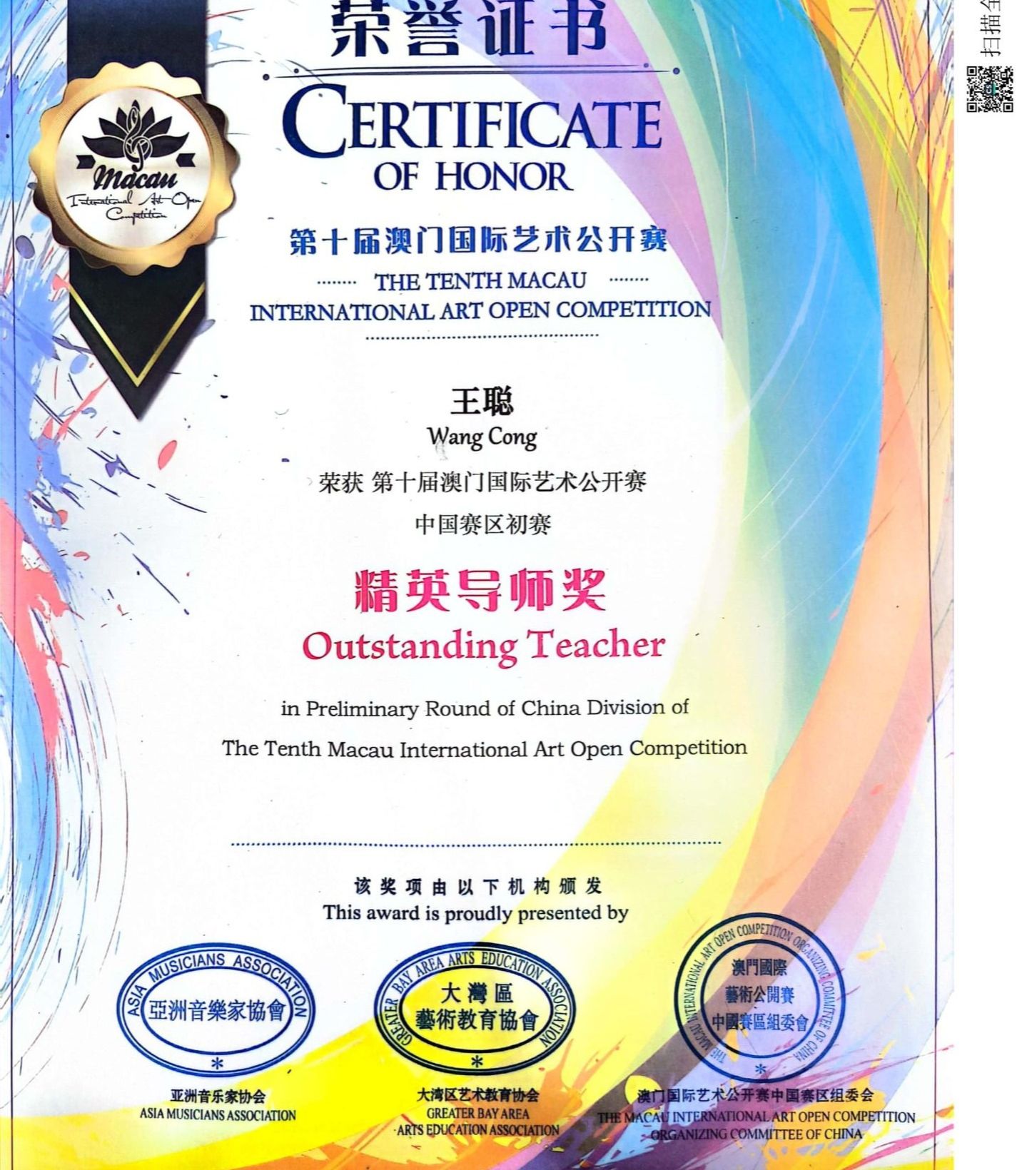 我校获第十届澳门国际艺术公开赛“卓越艺术教育单位”