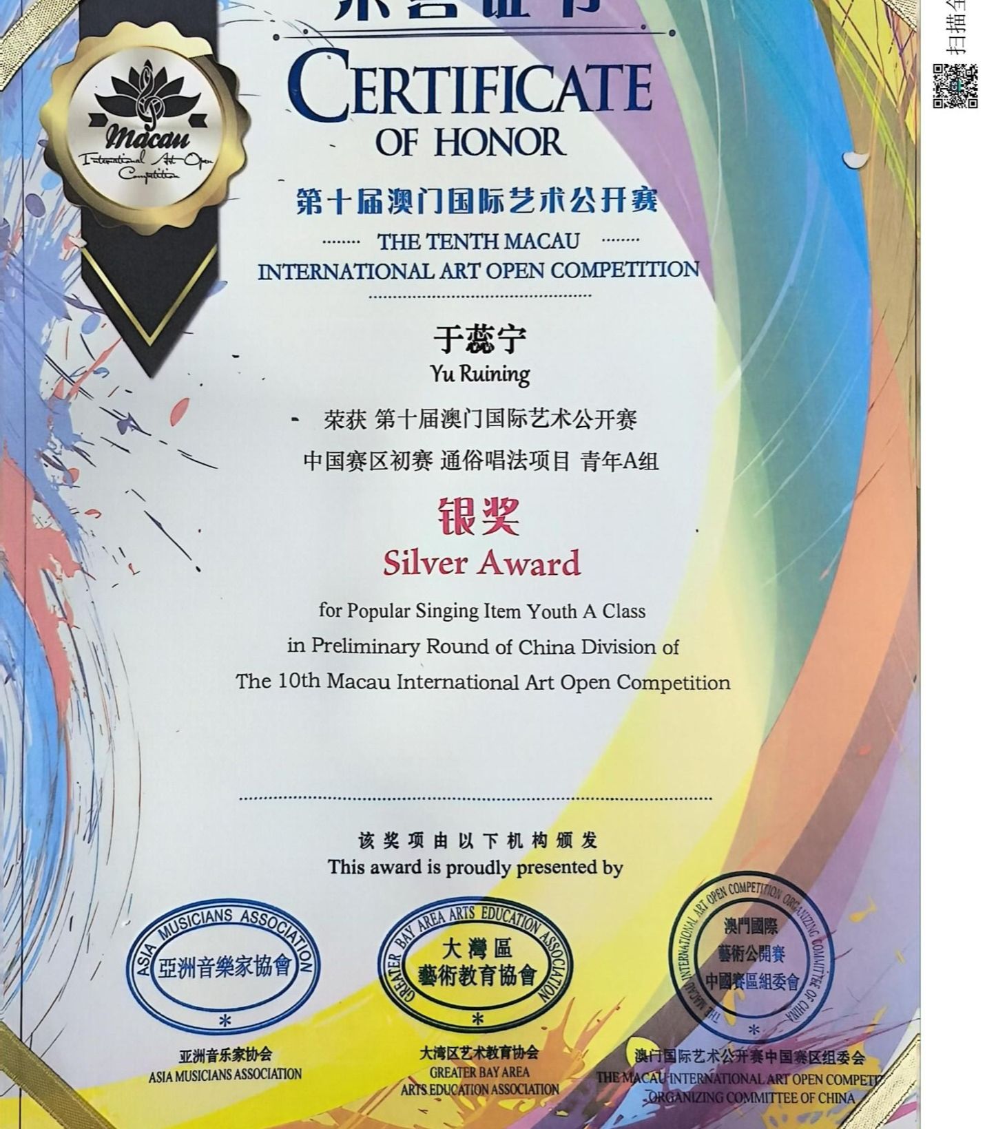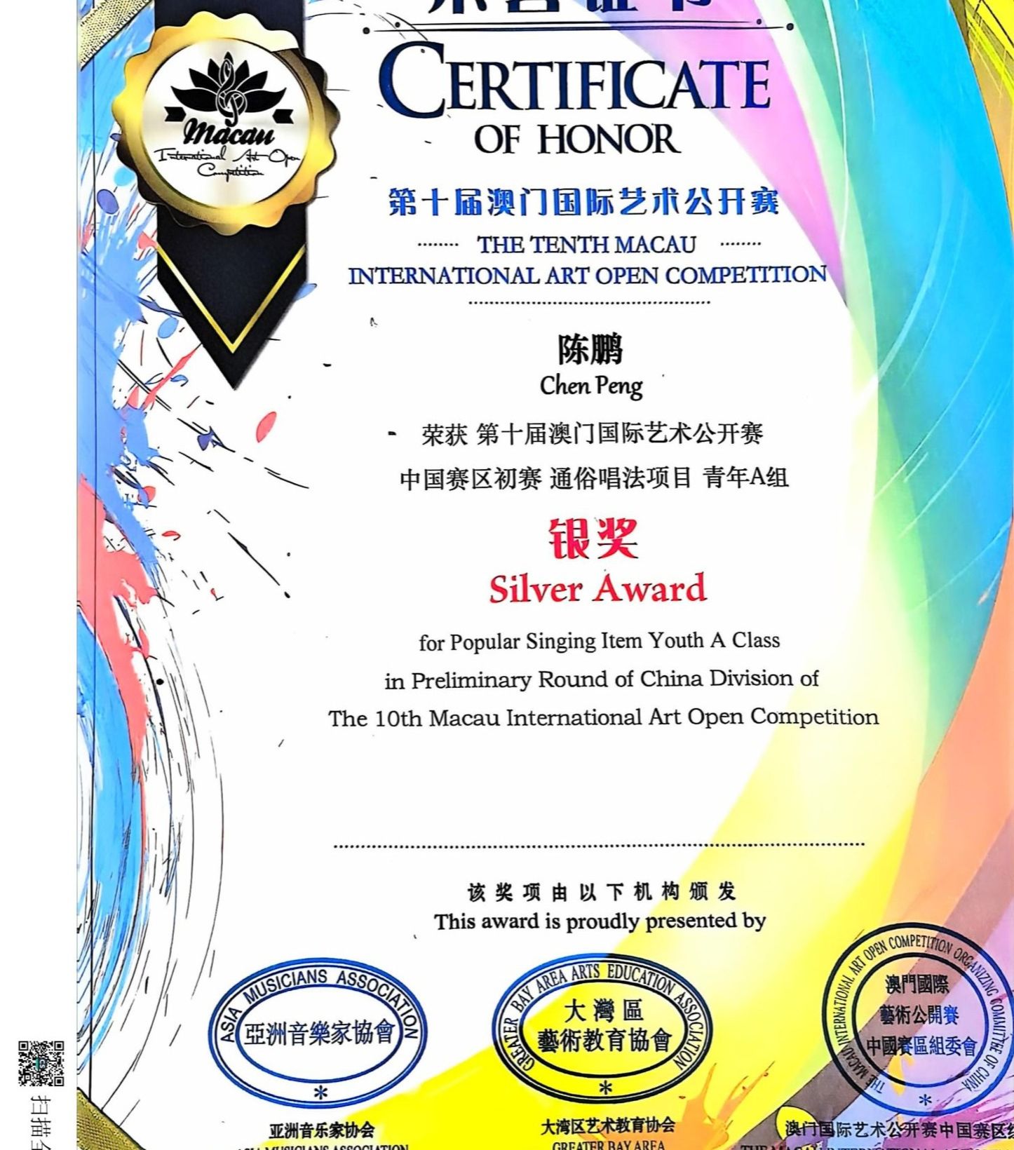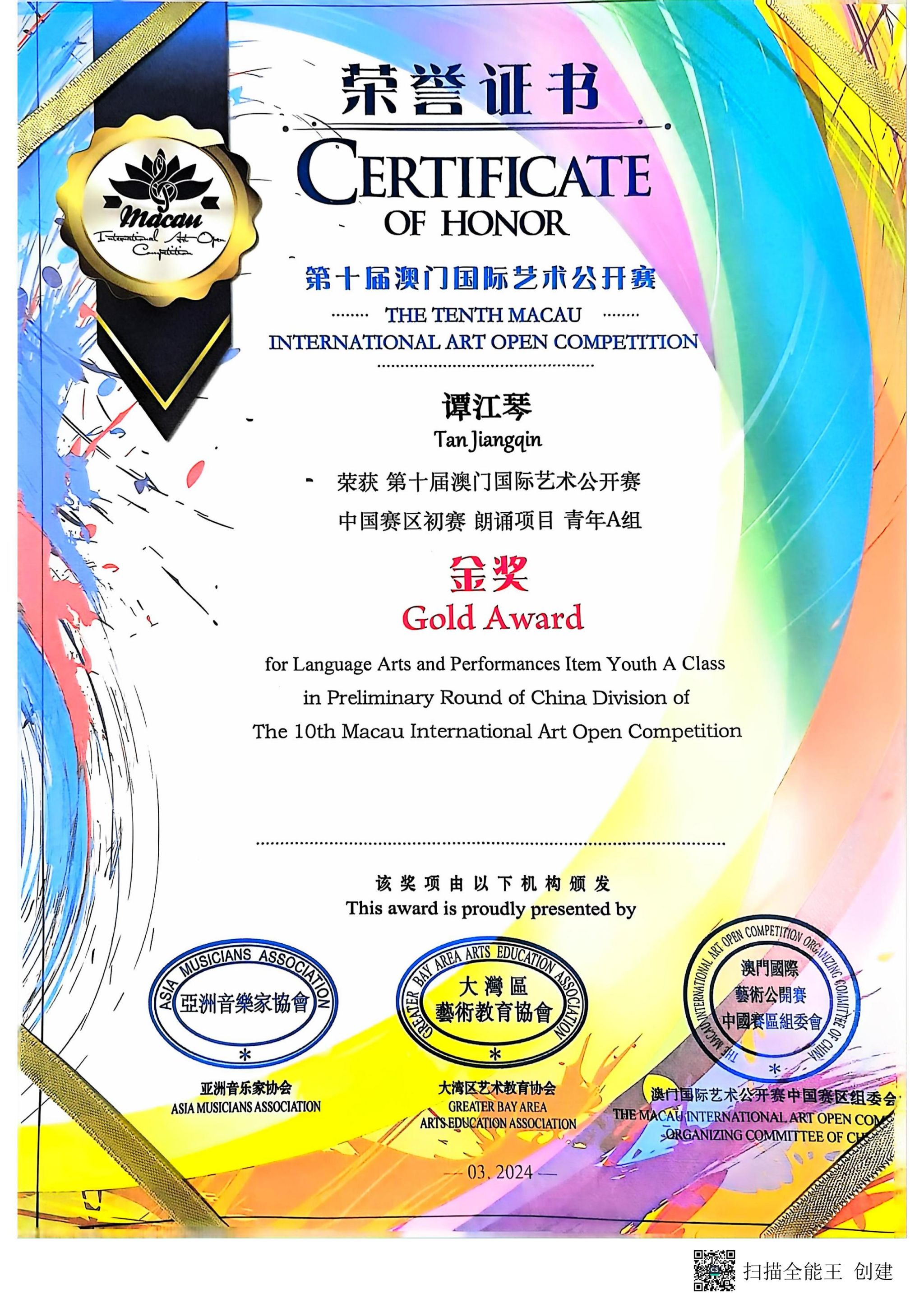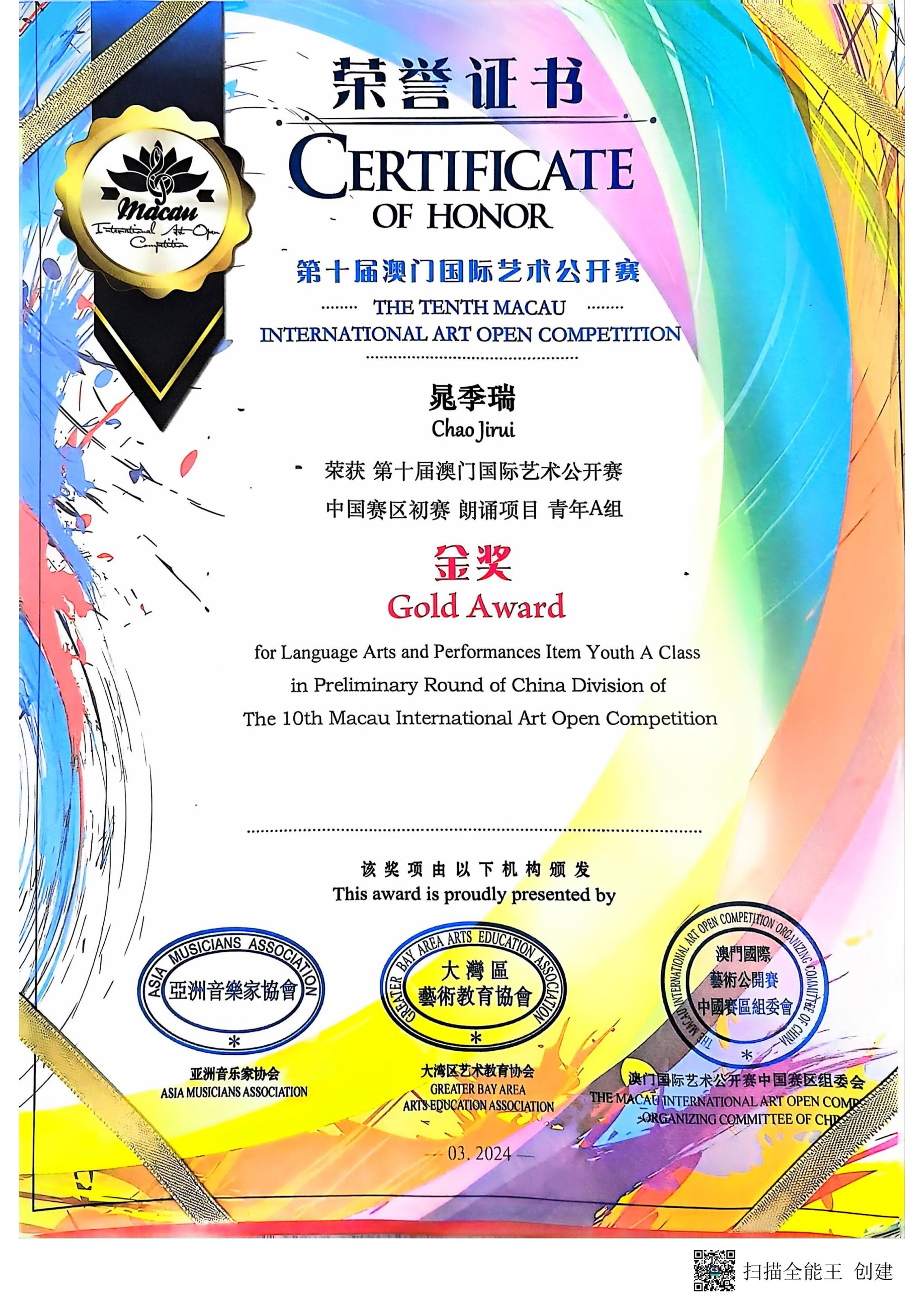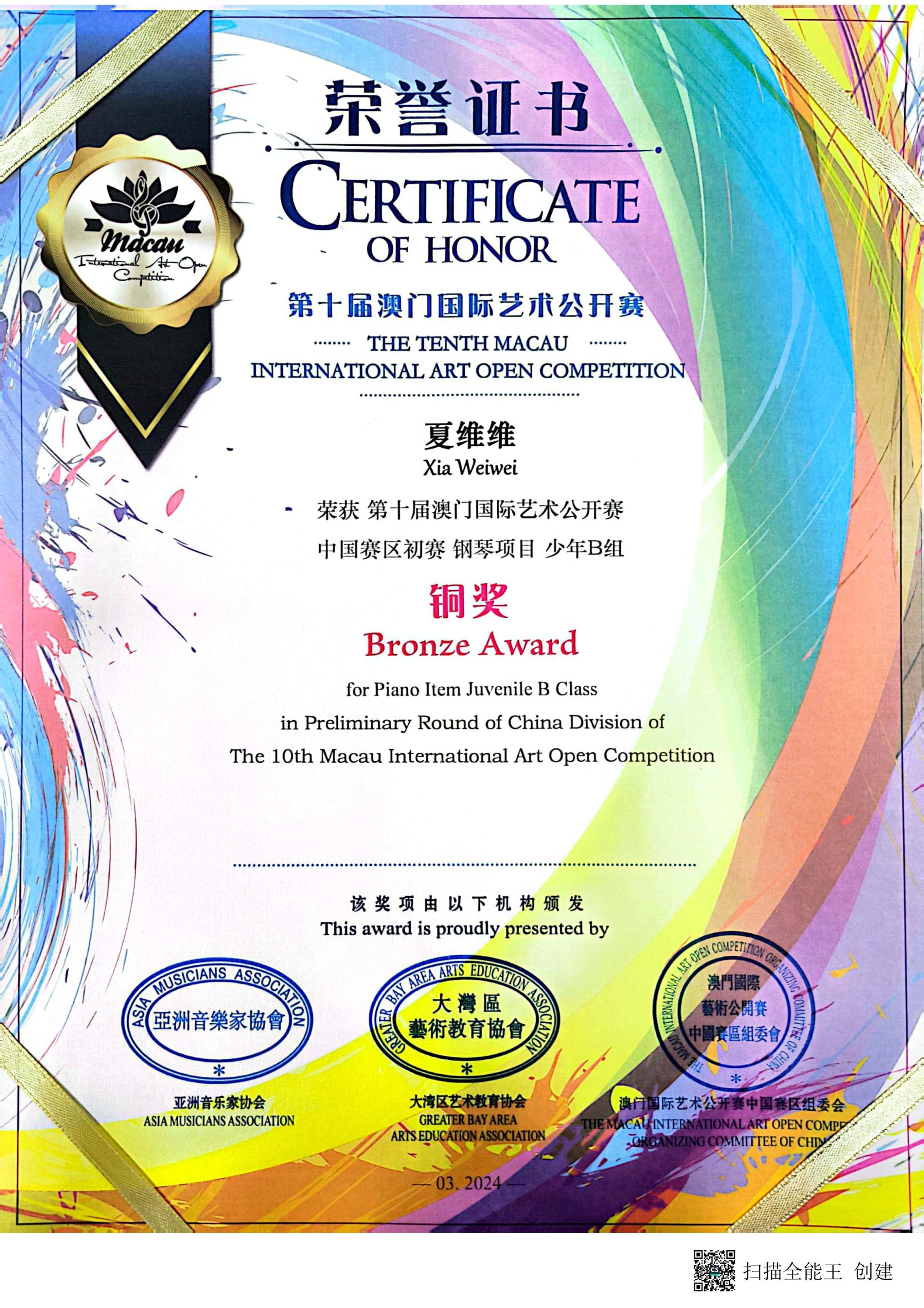 我校获第十届澳门国际艺术公开赛“卓越艺术教育单位”