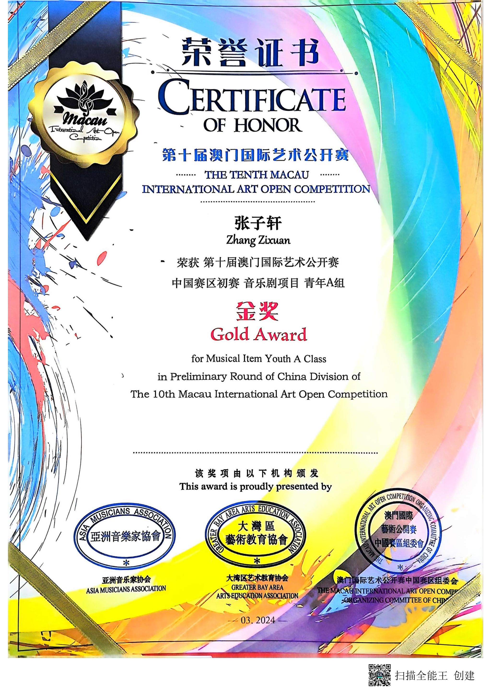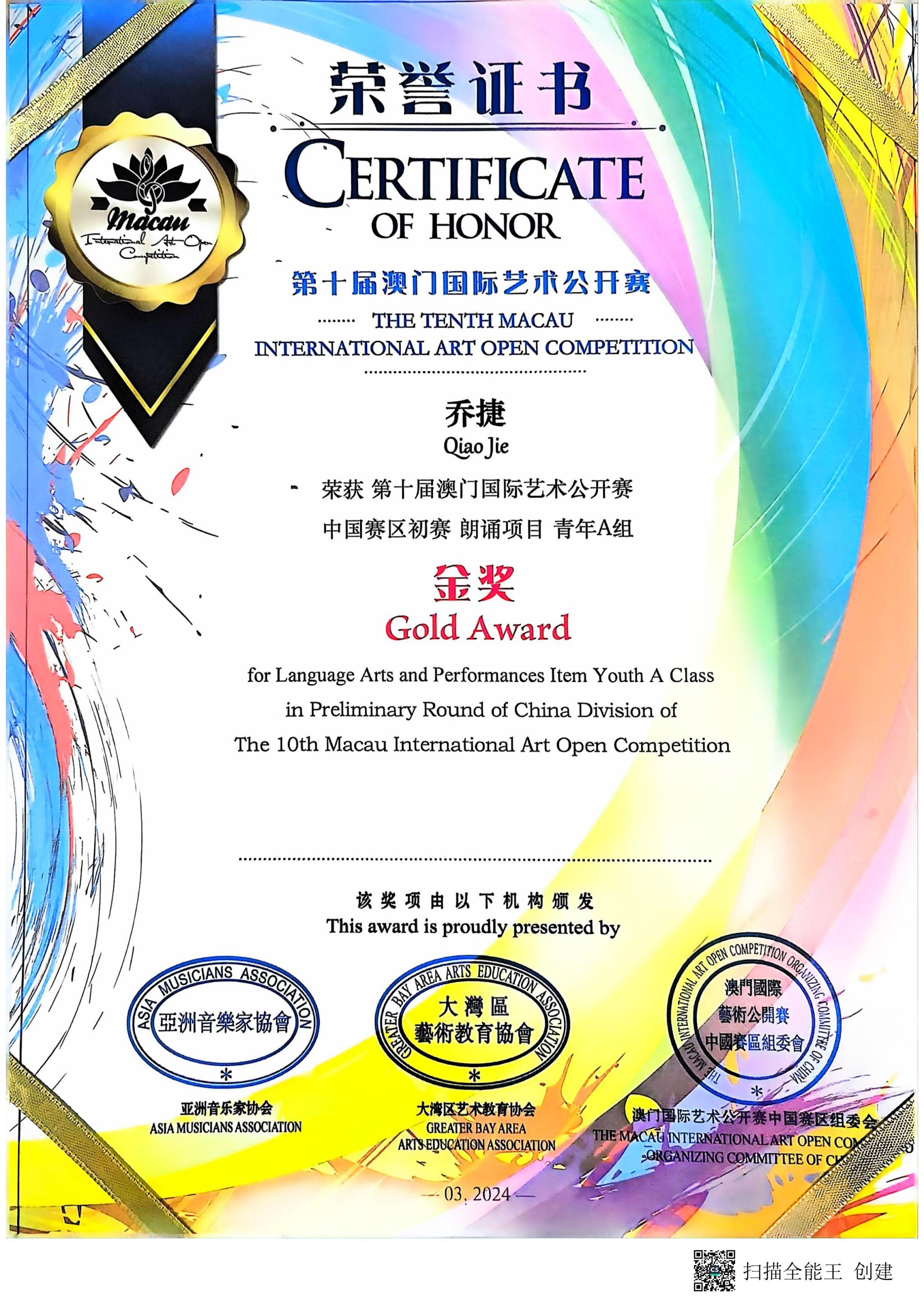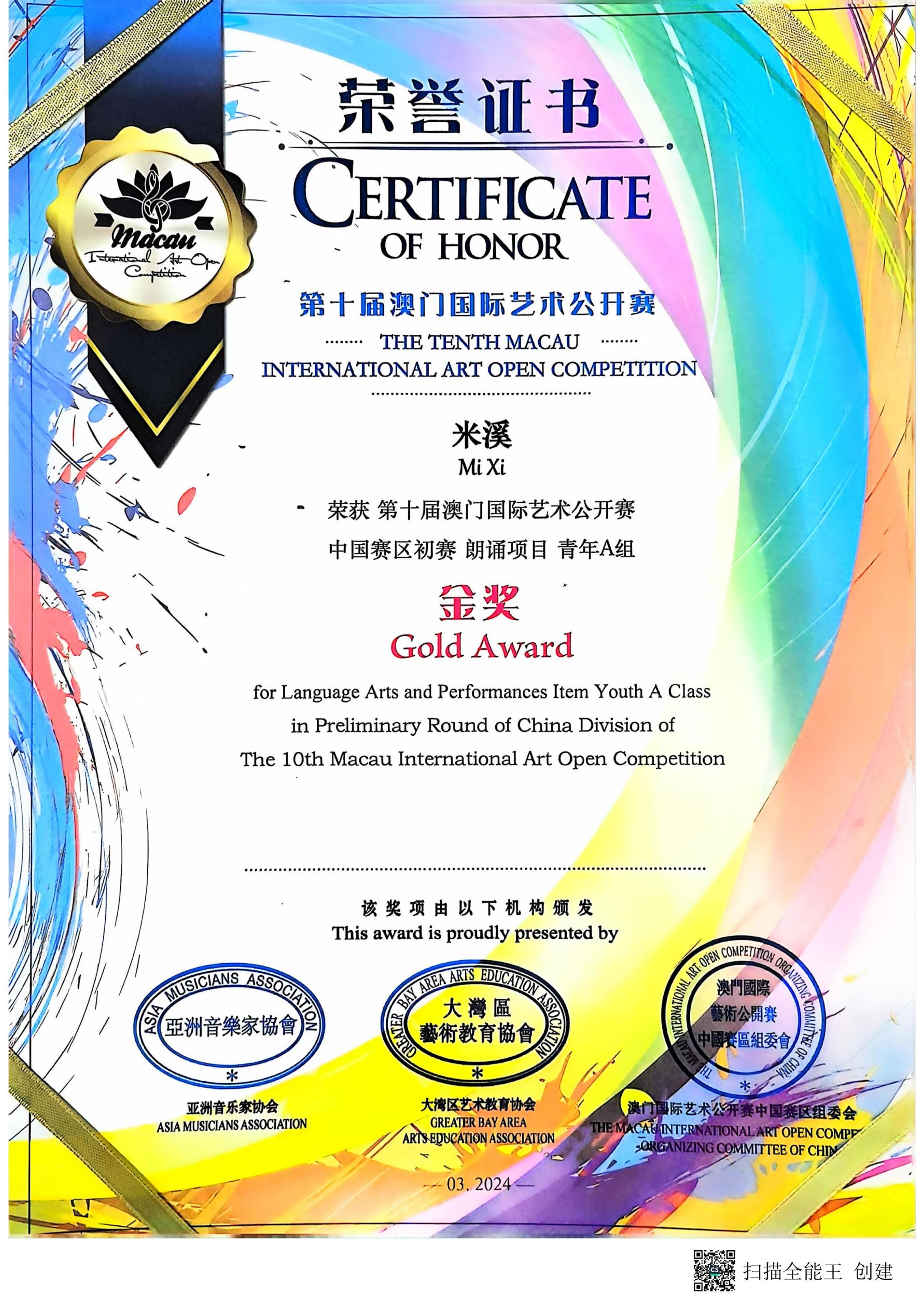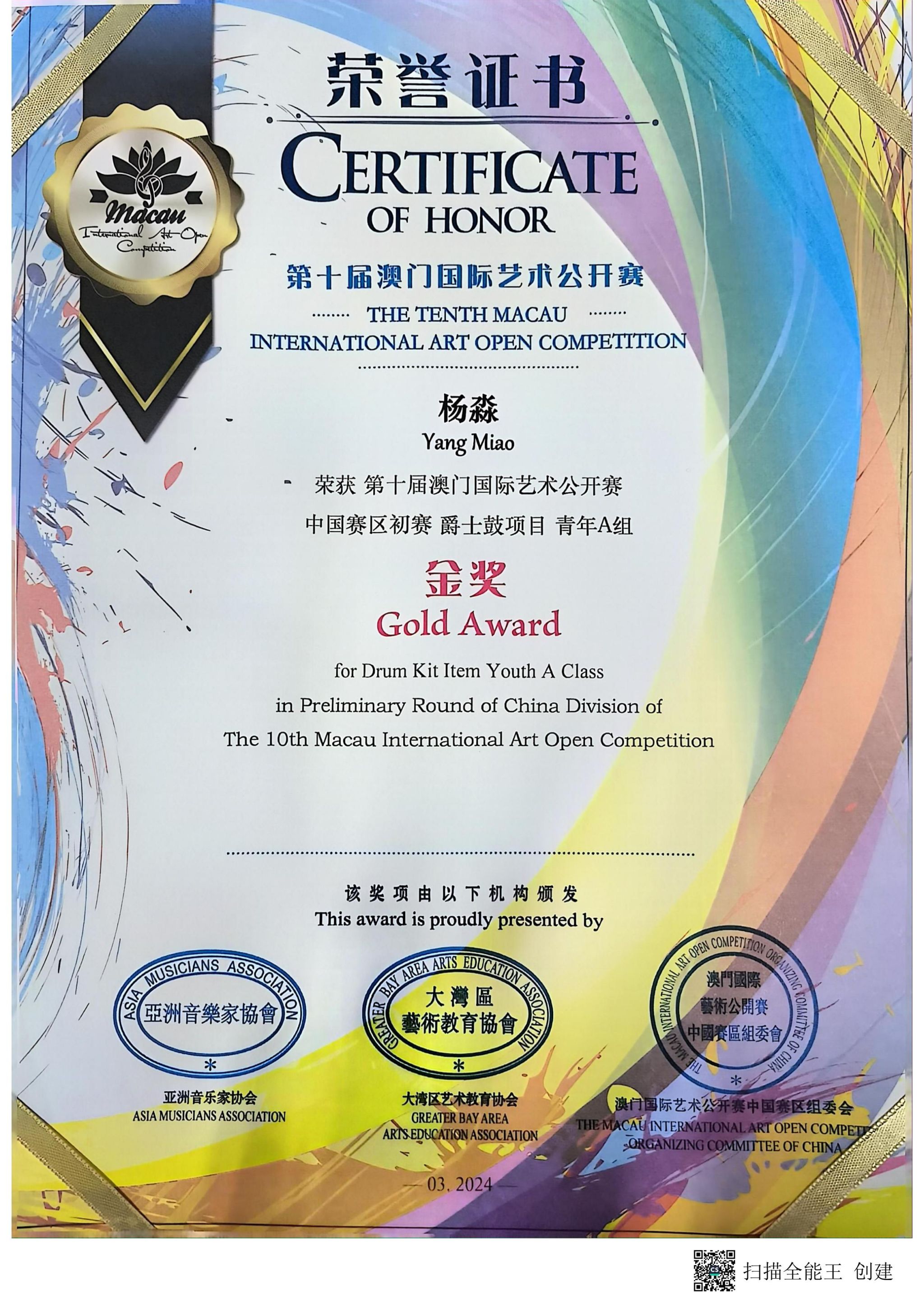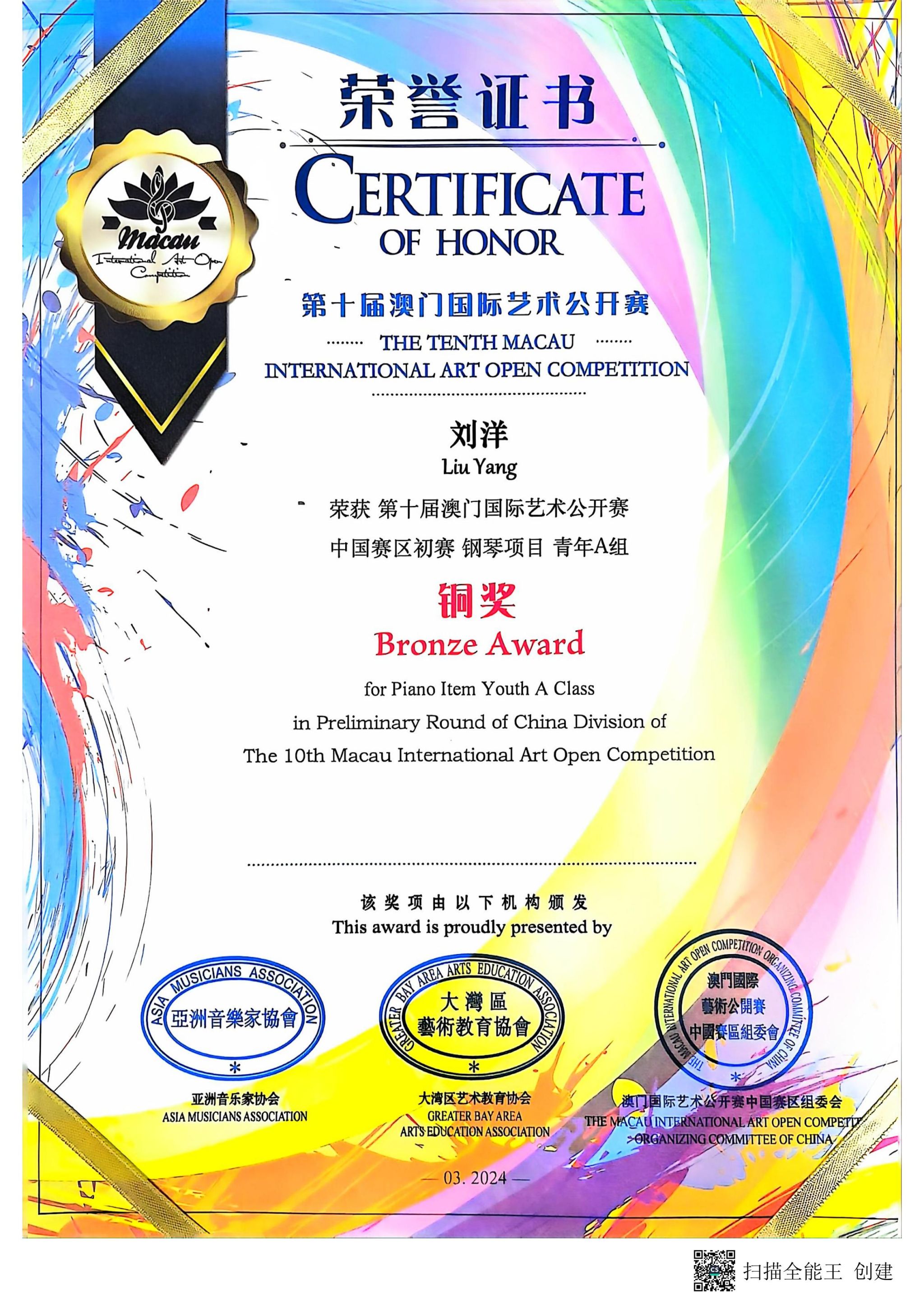 我校获第十届澳门国际艺术公开赛“卓越艺术教育单位”