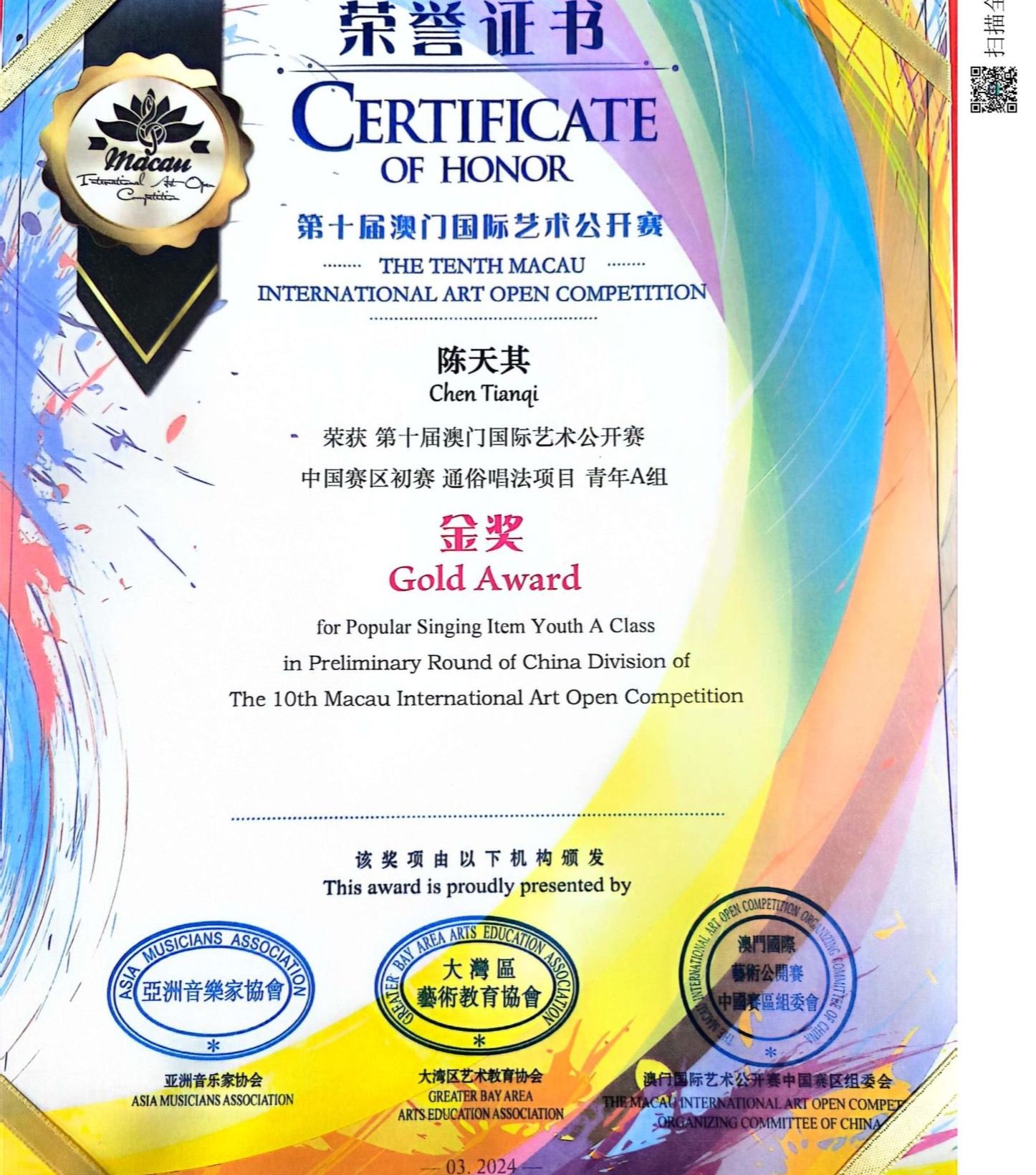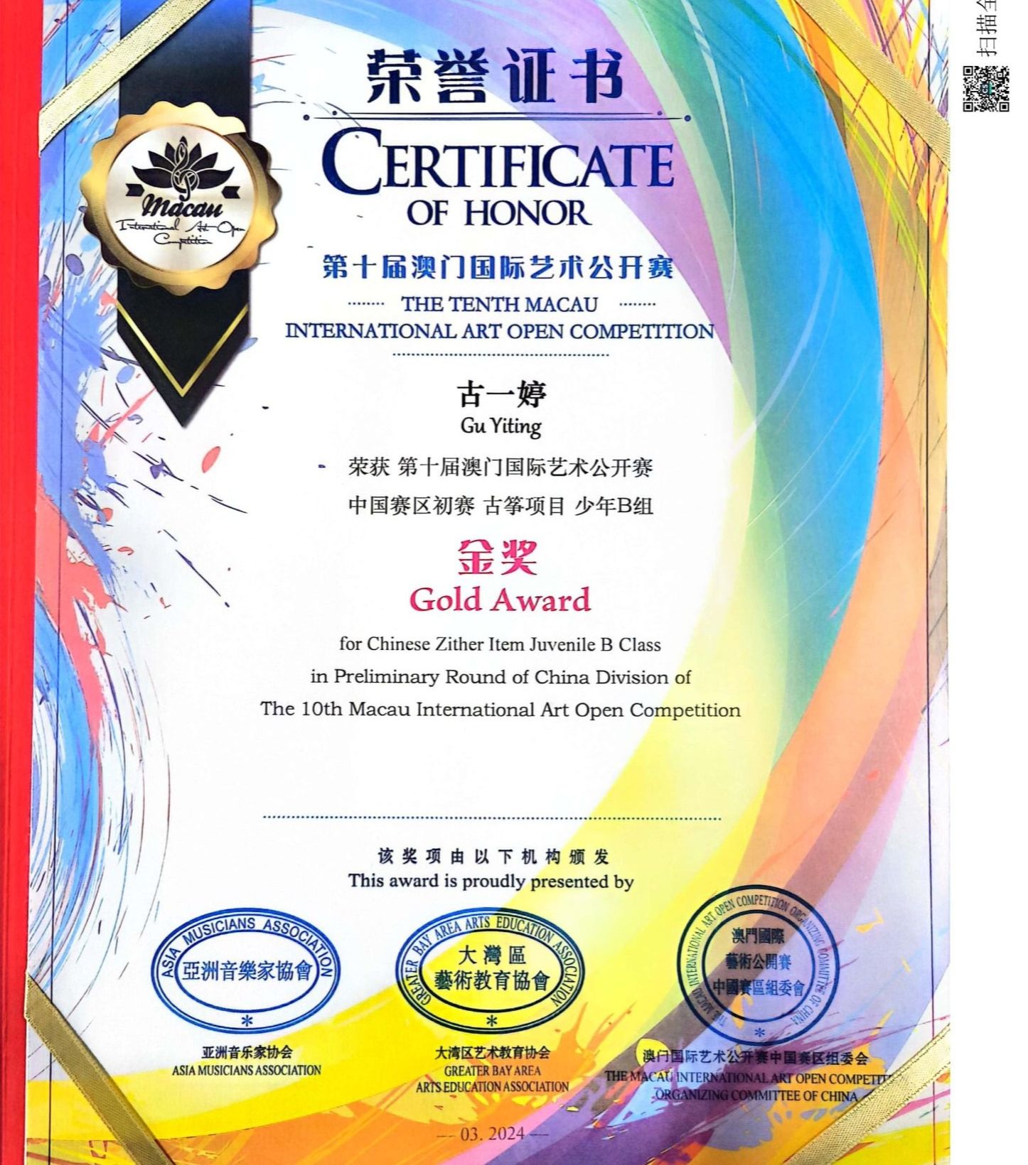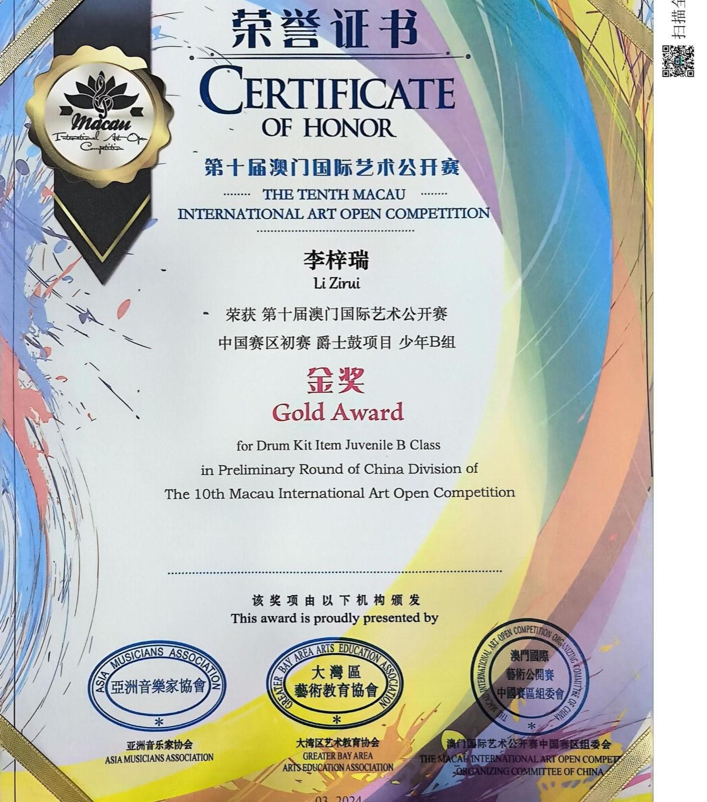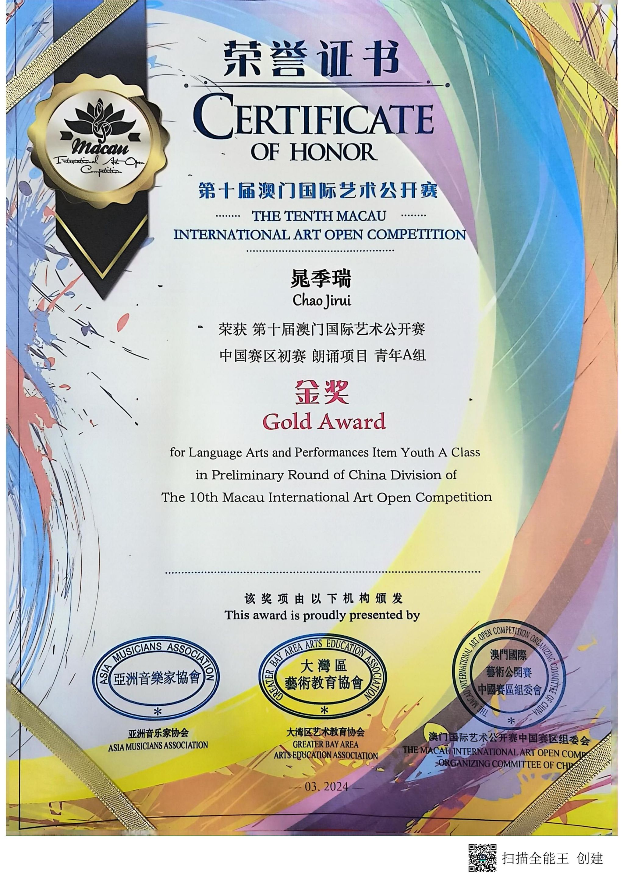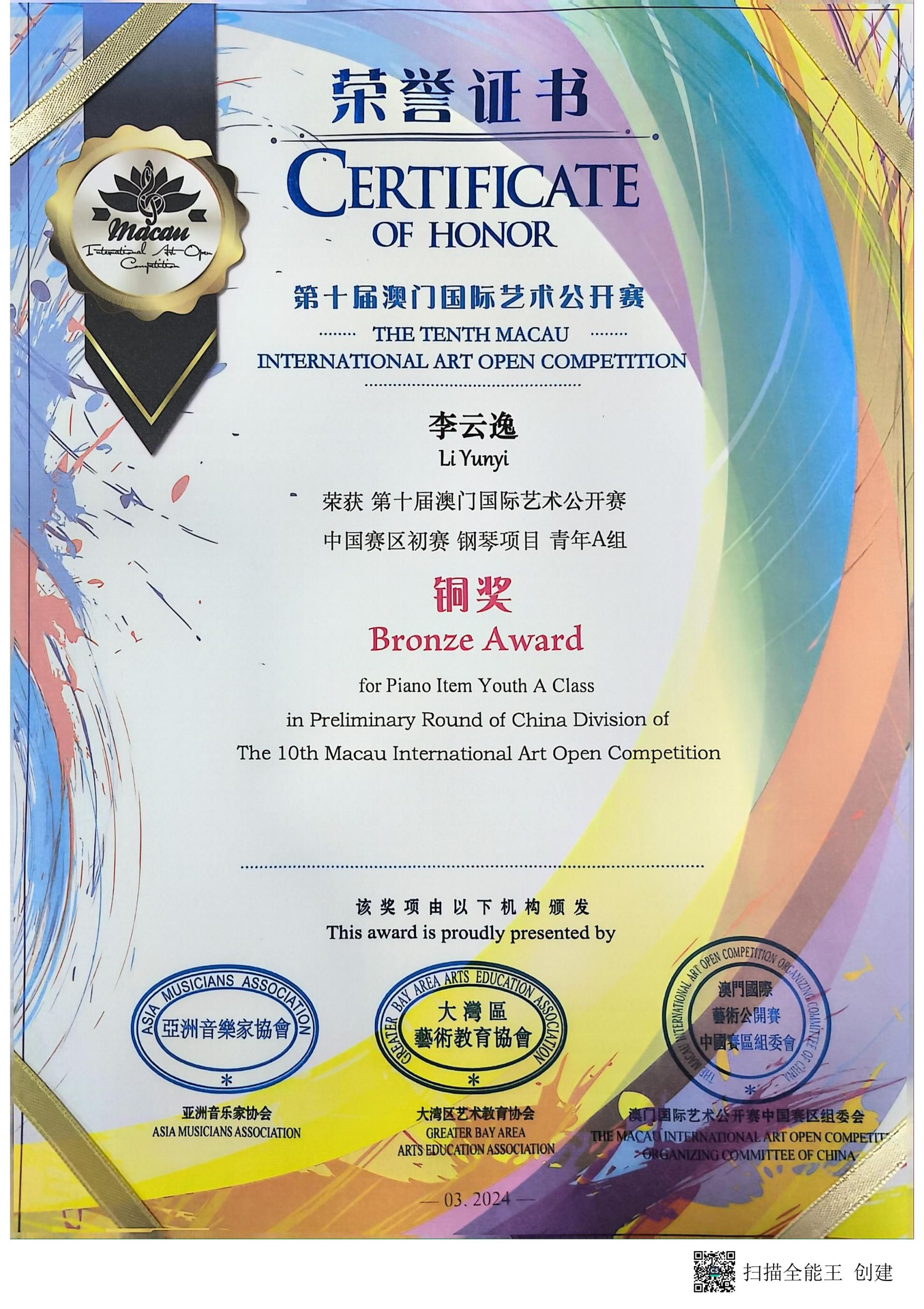 我校获第十届澳门国际艺术公开赛“卓越艺术教育单位”