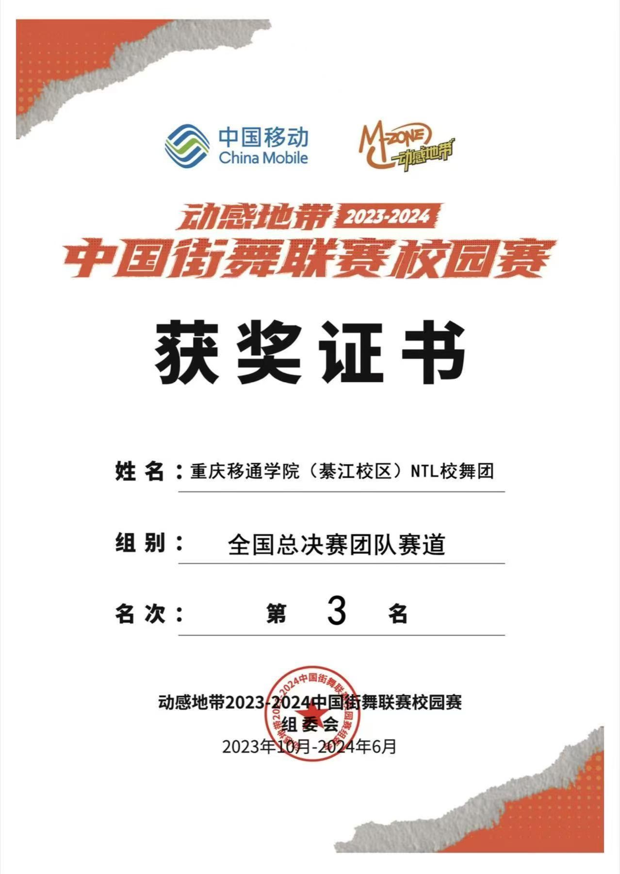 我校原创街舞作品荣获2023-2024中国街舞联赛校园赛总决赛全国季军
