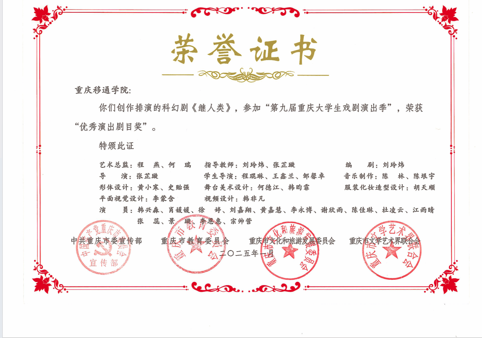 我校原创科幻剧获第九届重庆市大学生戏剧演出季优秀创作剧目奖