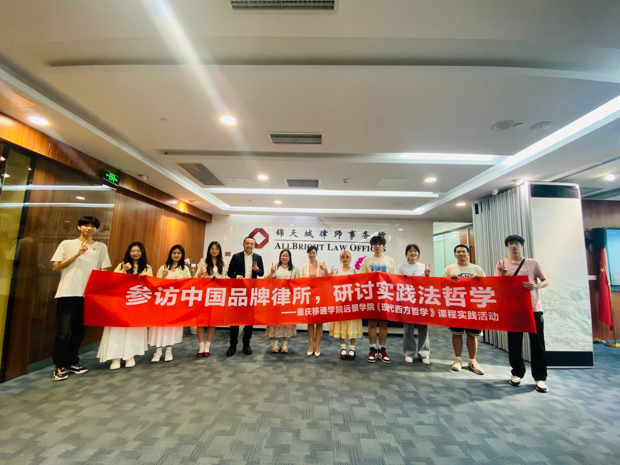 为持续深化远景学院哲学课程教育教学改革,加强与国内顶尖律所的联系,了解行业最新前沿与实践,2024年5月31日下午,远景学院哲学教师吴慈荷带领现代西方哲学班9位同学,参访位于重庆江北嘴国金中心的上海锦天城(重庆)律师事务所,师生们一行受到律所热情接待,在上海锦天城(重庆)律所合伙人陈如律师带领下参观律所,受邀参与上海锦天城(重庆)律所高级合伙人李章虎律师主持的由重庆市科学技术局、重庆市社会科学界联合会指导的重庆市科技发展基金会主办的“聚焦机器人与虚拟数字人”研讨沙龙,并与锦天城的资深律师们交流研讨实践法哲学。