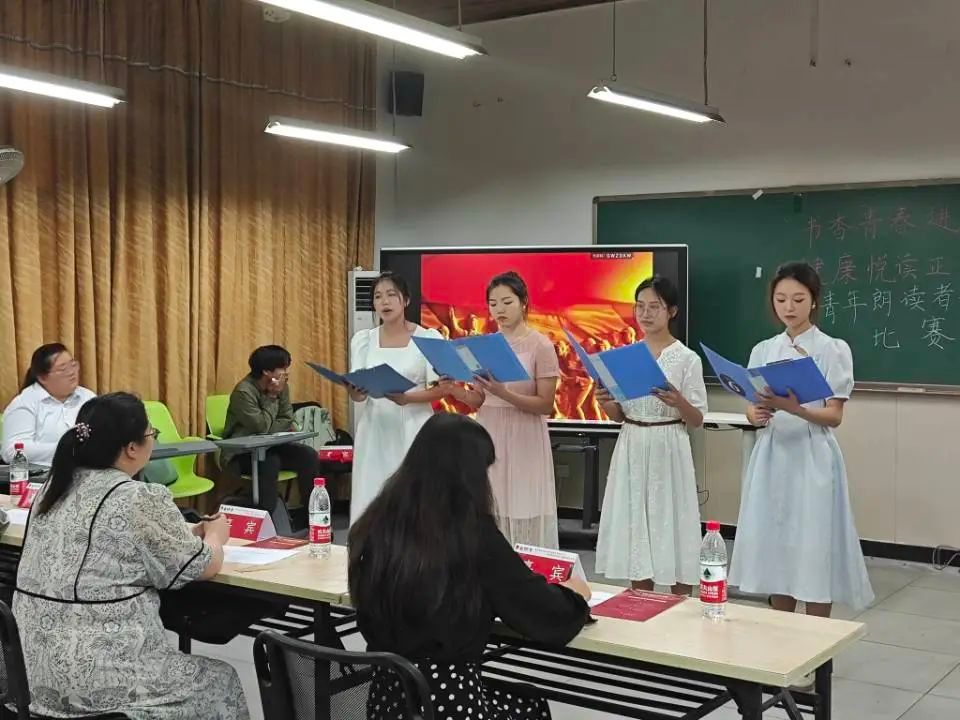 青年之星队,展现着青年精神的《青年扬帆正当时,争做时代追梦人》,在时柔时刚,一轻一缓,温和、响亮、高亢的声音充满整个场地。她们激昂的朗诵,“相信可以在大山深处看见繁华,相信可以在满是喧嚣的孤独中看见成功,相信可以在卑微中看见骄傲,相信所有的奋斗都通向美好相信青春值得燃烧!”让我们坚信,我们的青春总是无限美好。