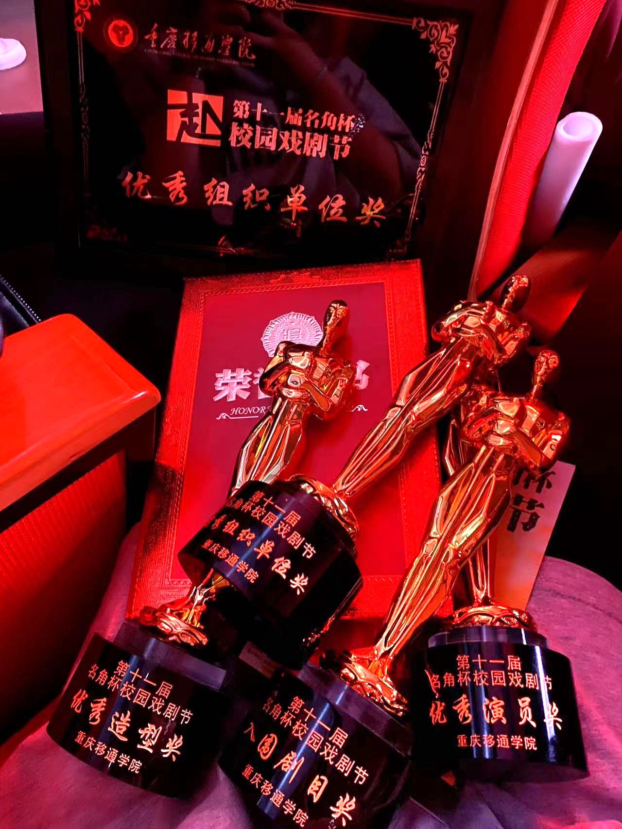 2024年4月25日,重庆移通学院第十一季“名角杯”校园戏剧节闭幕式暨颁奖典礼拉开帷幕。艺术传媒学院推选作品《家国大义,共赴生死》在众多参赛作品中脱颖而出,获得了本届戏剧节入围剧目奖、优秀造型奖、优秀组织奖,演员孙鑫也荣获了优秀演员奖。此外,我院学子也在本次戏剧节不同剧目中担任学生导演,7名学生获得优秀学生导演。
