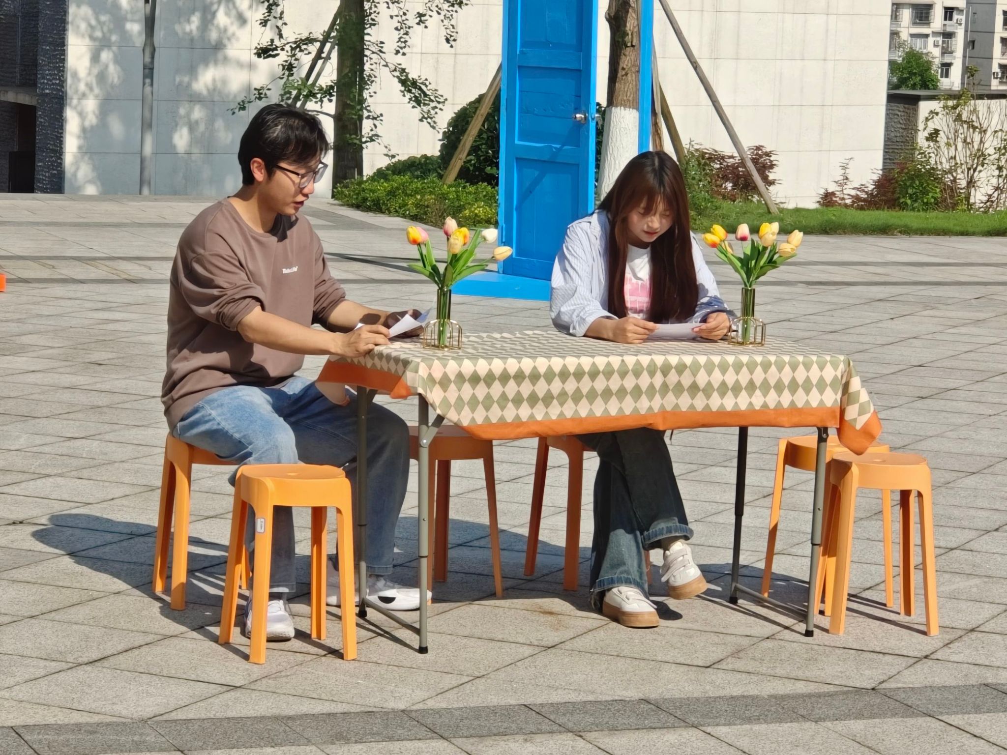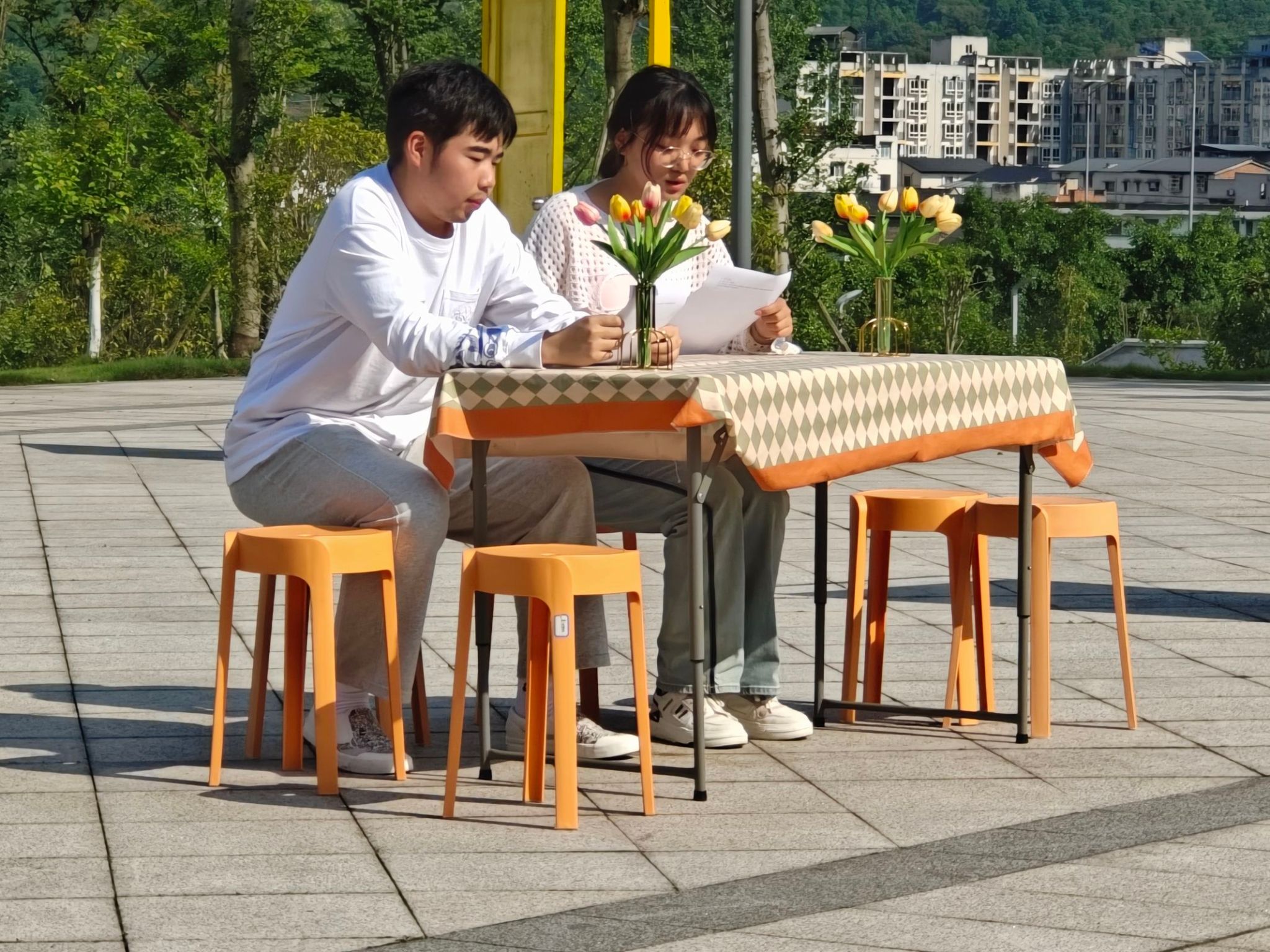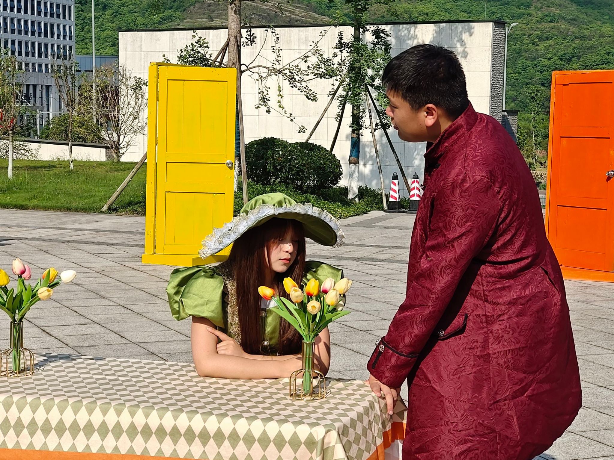 2024年4月26日戏剧演绎——“我要当戏剧人”校园戏剧节綦江校区外围活动在微风广场顺利举行。万黑之中,一光独属,台上,一人发光,台下,千万目光注视,熠熠生辉。本次活动由通信与信息工程学院、大数据学院、计算机学院和大学生艺术团的同学引导参加人员进行戏剧演绎体验。