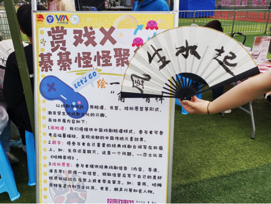 画脸谱,我们将提供中国戏剧脸谱样式,参与者可参考后临摹描绘,呈现浓郁的中国传统元素效果;题字,参与者可将自己喜爱的经典戏剧台词写在折扇上。如:“生存还是毁灭,这是一个问题。——莎士比亚《哈姆雷特》”;挂祈愿签,参与者提供经典戏剧信息(内容,导演、演员等)获得一张信签,领取信签后写下自己的美好祝愿祈福,挂在樱花树上。