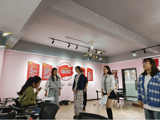 在排练过程中,我们也遇到了许多问题。导演/编剧是第一次写剧本也是第一次当导演。即使翻阅、浏览了许多相关资料与视频,也难以精准把控演出时间。而艺术教育中心吴娇老师的到来为剧目解决了这个问题。吴娇老师在大致看了一遍后,为剧目的优点表示了赞扬。同时,也指出了问题所在,为剧目删减了一些多余的剧情。也为演员的演出做出了有效的指点和建议。本次排练后,整体节目效果有了大的提升。