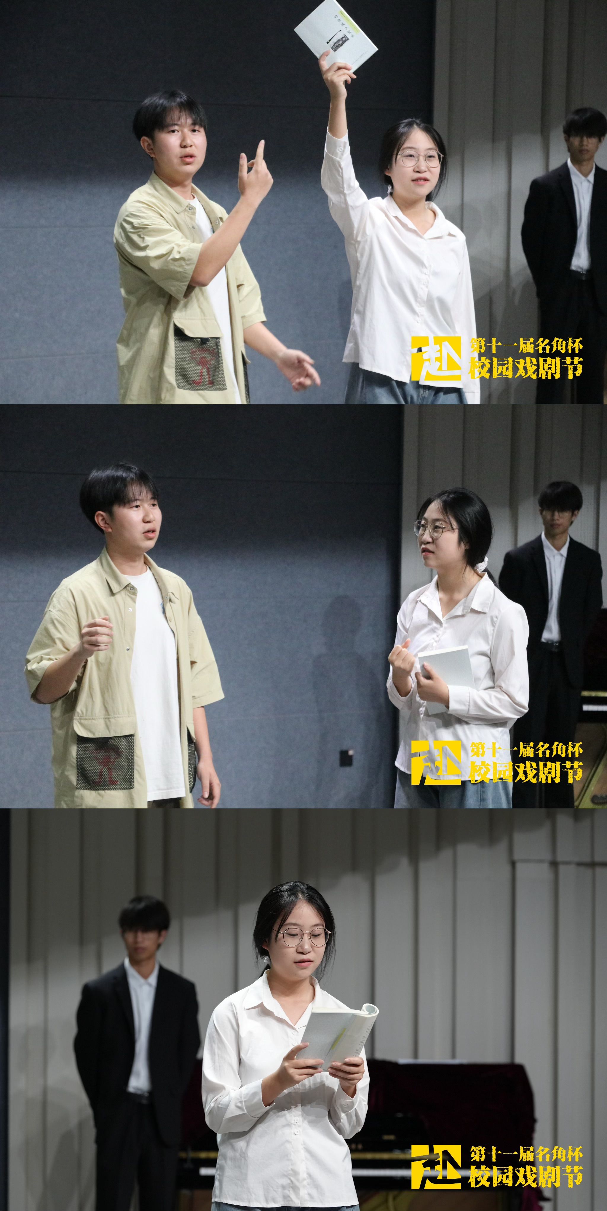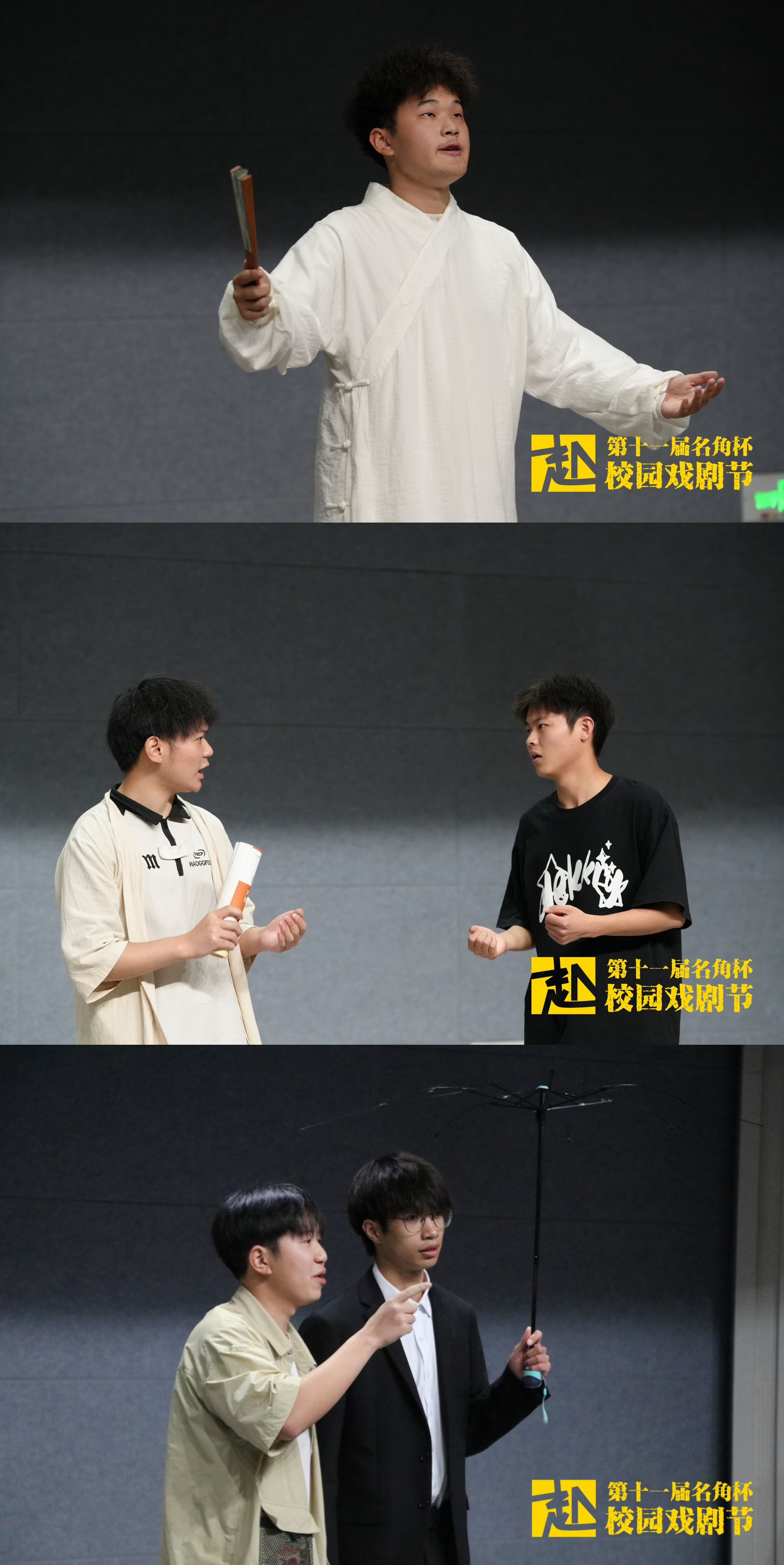 剧中通过夸张的人设和具有穿梭时空能力的角色设定,深刻揭示了当下社会普遍存在的问题和现象。同学们用生动的表演和犀利的语言,将剧中人物的情感和冲突展现得淋漓尽致,让观众们仿佛置身于一个真实而又梦幻的世界中。上岸失败的“考研男”、追求功名利禄的“学生”、努力奋斗却迷茫的“年轻人”……这些角色形象鲜明,引发了同学们的深思。