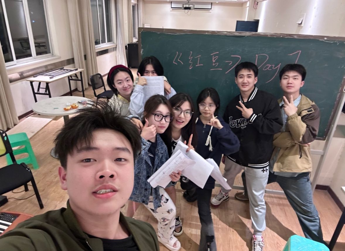 随着排练的深入,艺术教育中心申芸溱老师以及王诗颖老师多次对学院排练进行监督以及指导,并在演出前一日邀请来自俄罗斯国立舞台学院的表演老师对话剧进行点评同时指出现目前可以优化的地方。每一位演员都在进步,每个环节都在提升。在夜以继日的排练中,大家一起确保每个细节都能贴近历史生活的真实样貌,同时又能触动现代人的心弦。艺术教育中心李蒙老师为了舞台能更加有吸引力和美感,不断为我们提供道具以及布置指导,一切都在不断向好。《红豆》不仅是对爱国主义的弘扬,更是对所有支撑历史前进的英雄的致敬。
