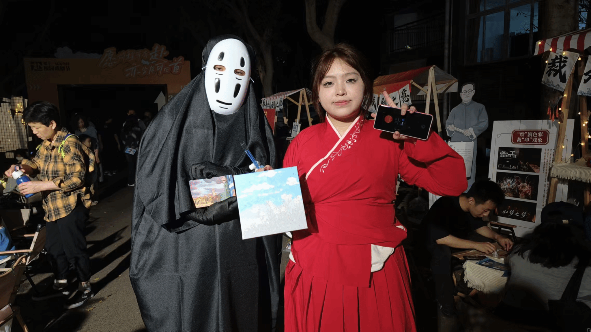 余晖将尽,夜幕降临,活动也逐渐进入了尾声,摊位前依旧人头攒动,热闹非凡,大家纷纷不舍地与各种创意“角色”进行合影留念,洋溢着灿烂的笑颜。此次由远景书院举办的“映戏剧之语”戏剧节外围活动,以创意明信片展示、角色造型cosplay、缤纷油画DIY的形式顺利落下帷幕,结合美观性、创意性和互动性,获得了同学与老师们的热情参与及昂扬兴趣。艺术来源于生活,生活便是艺术取之不尽用之不竭的宝藏,让经典与时俱进,让戏剧文化充满愈来愈新的活力,给大家带来全新的体验,帮助同学们领悟戏剧中的艺术,感受戏剧的魅力,奔赴属于我们自己的戏剧人生,这也是本次外围活动诠释的价值与意义。这是戏剧文化的延伸,是戏剧魅力的绽放,更是戏剧活力的迸发,相信参与者们在欣赏和创作的过程中,一定感受到了不一样的情绪与文化价值,共同享受着这场属于戏剧文化与艺术的全新盛宴。