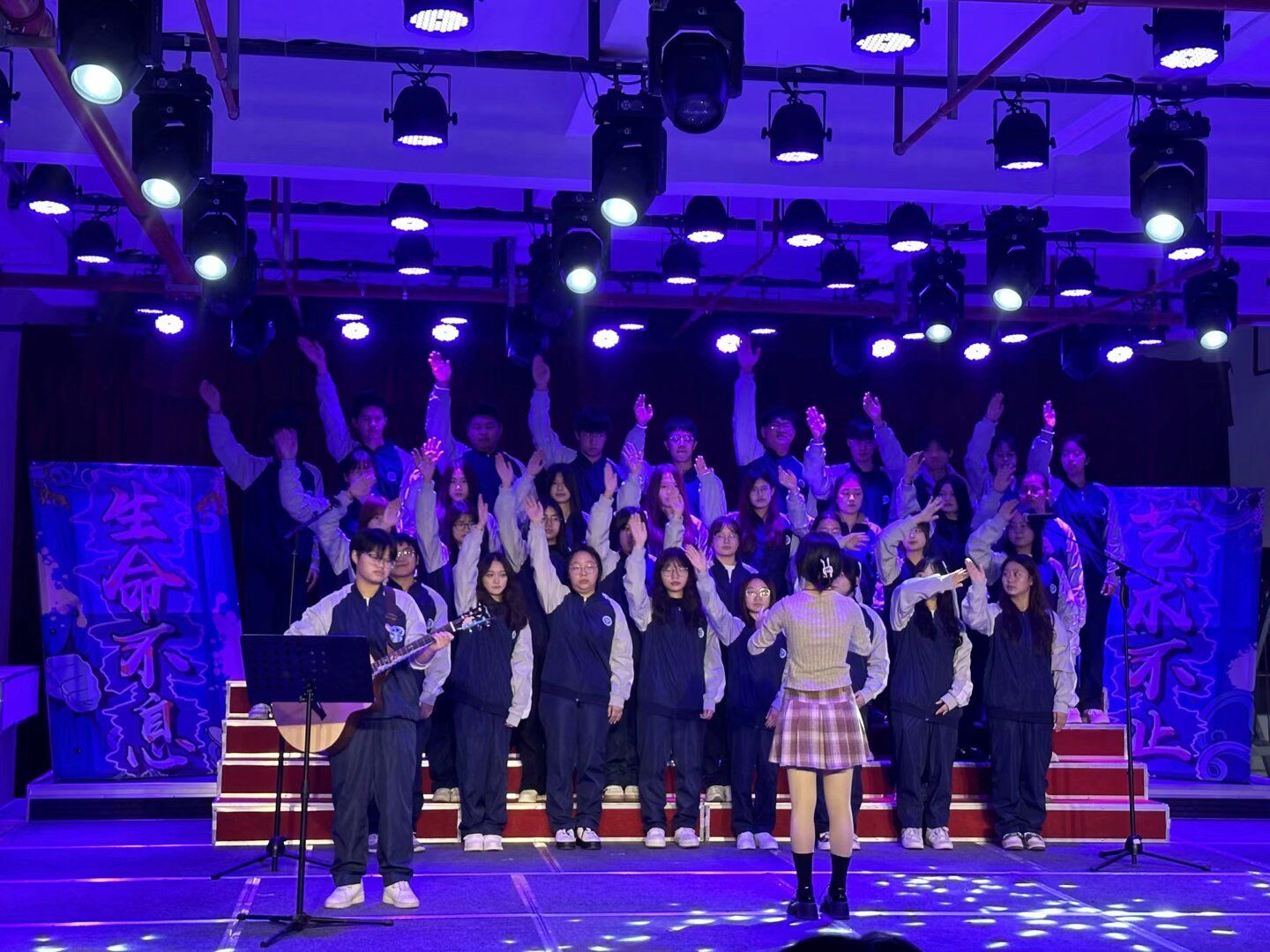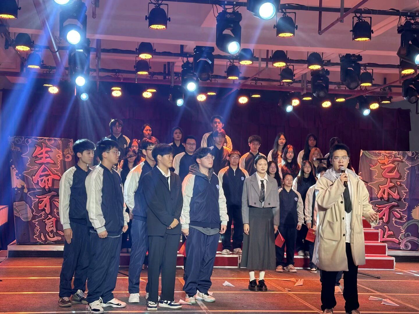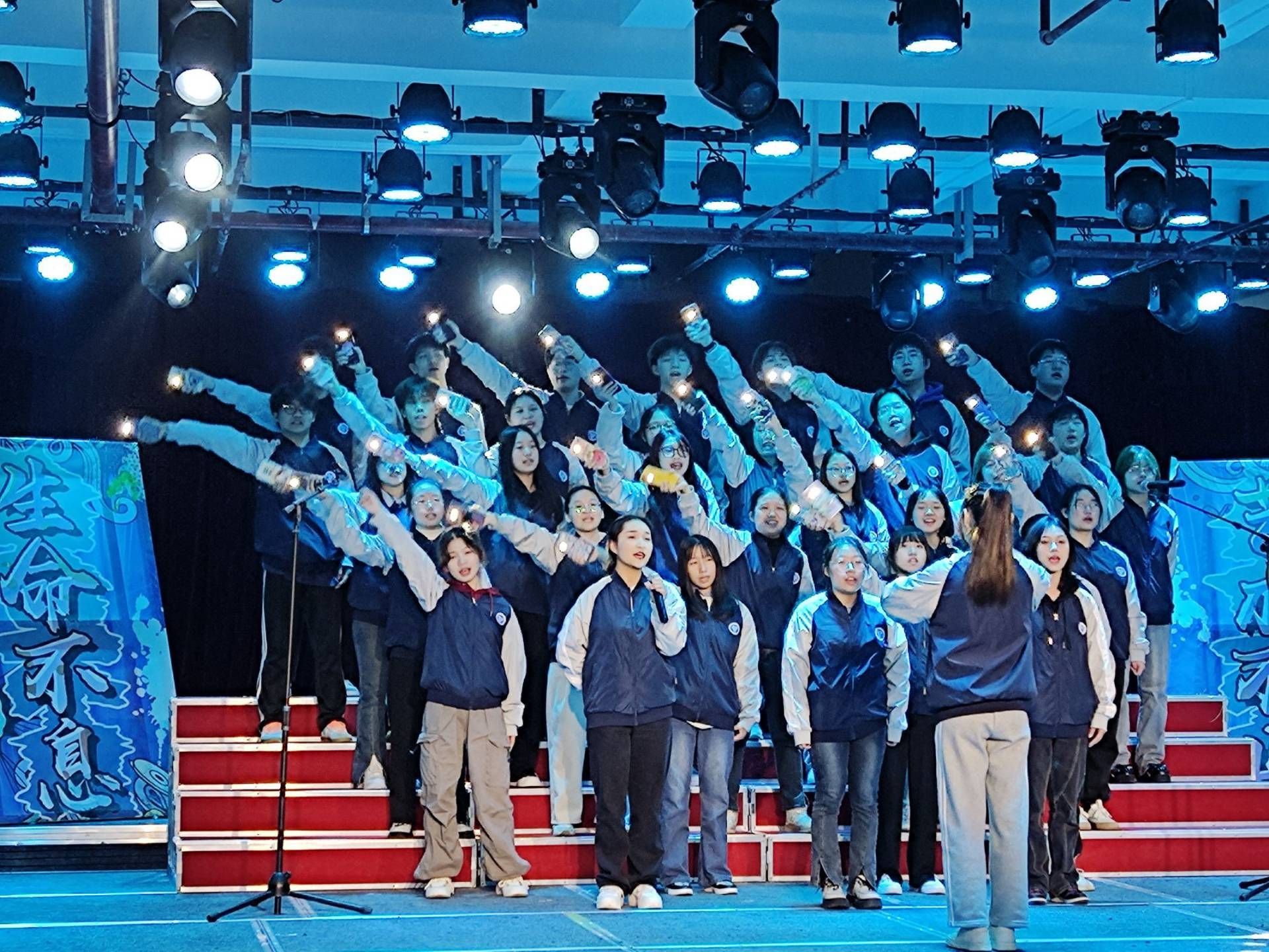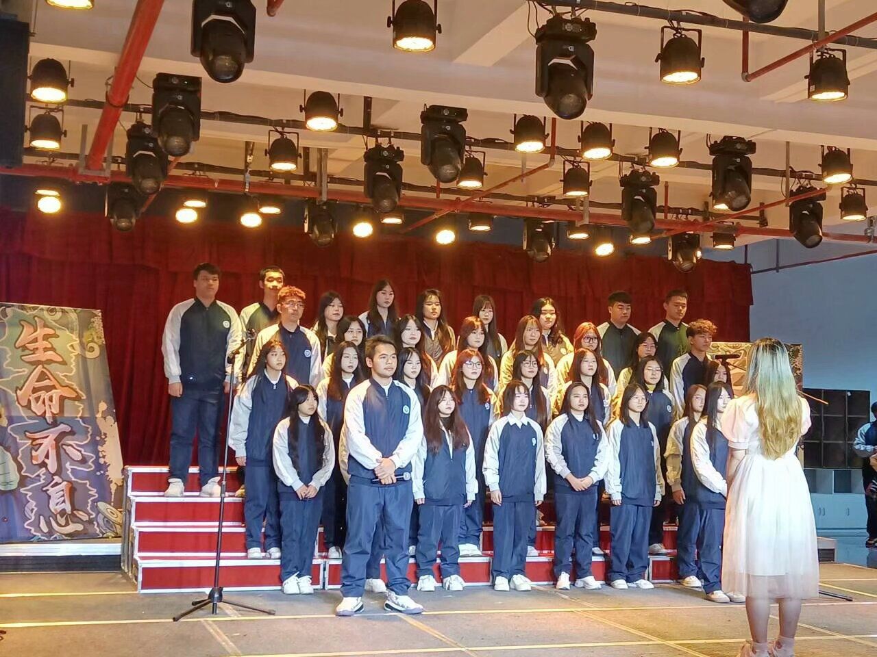在漫长的人生道路上总会面临各种困难和挑战。但正是这些挫折让人更加坚强、勇敢。正如工商管理类15班带来的歌曲《我们的明天》中所唱,“我们的明天”是充满希望和梦想的,只要心怀信念,勇往直前,就能创造出属于自己的辉煌未来。