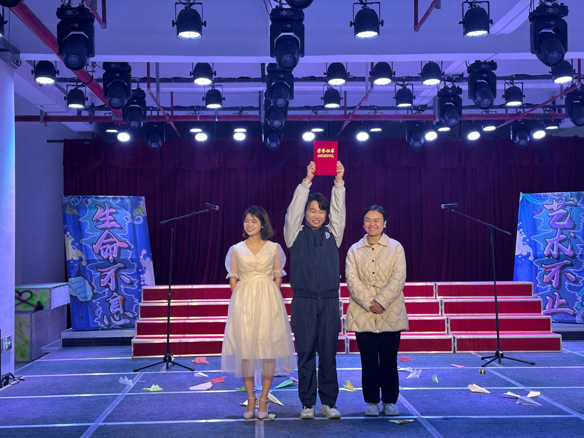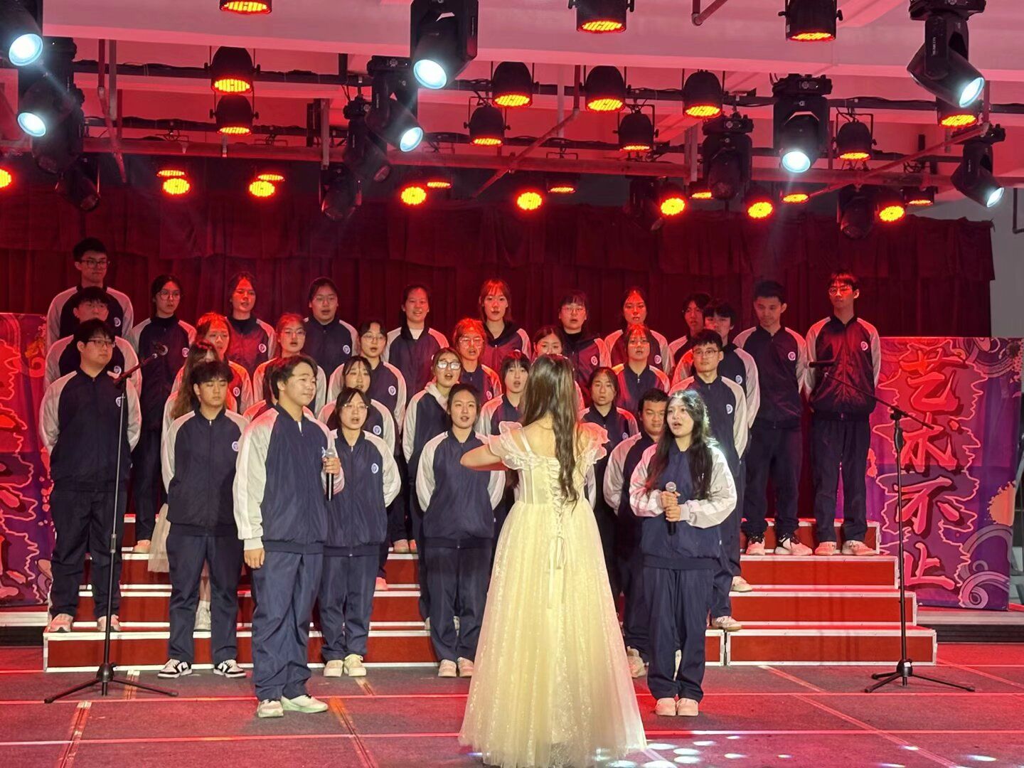 淬炼商学院学工副院长刘薇唯莅临本次班级合唱大赛,学工办主任王凤老师、戏剧影视学院艺术修养与实践板块指导老师王颖老师、淬炼商学院志愿服务、艺术修养与实践板块指导老师孙成彬老师担任评委。