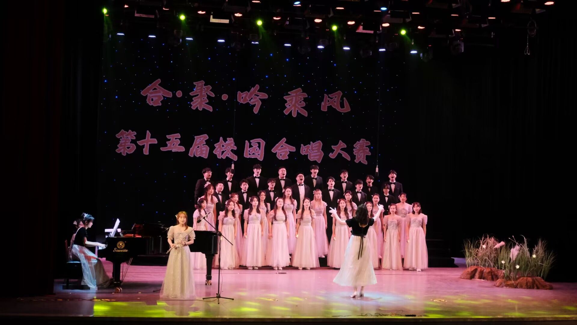 随着指挥的挥动,那熟悉的钢伴与笛声再次响起,仿佛在述说着一段又一段感人至深的故事。从恋人到朋友,从朋友到父母,再到那稚嫩的小孩,我们在这旋律中寻找,探索,提问,从未停歇。分男女生两个声部交织而成的合唱,如同两股激流相互碰撞,相互融合,情绪层层加深,直击人心。