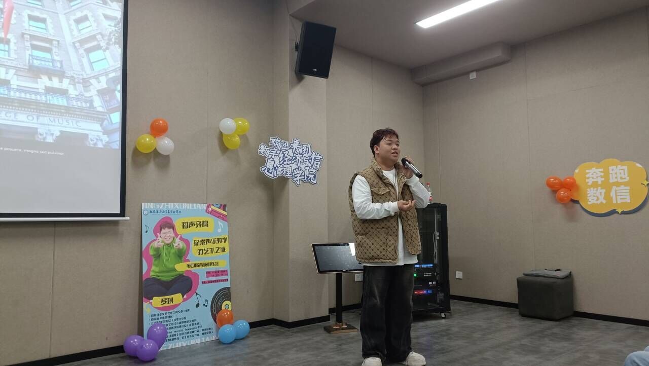 为丰富校园艺术活动,提升同学们声、台、形、表全方位的专业艺术能力,培养学院的优秀艺术人才,引领同学们做先进的文化倡导者和实践者,数字经济与信息管理学院于12月6日在瀛溪书院·潜台词报告厅举办第四届第一期青栀训练营。本次很荣幸邀请到了校流行声乐团团长罗琪同学,以“声”为立足点进行针对性训练,为同学们带来更加专业性的指导。