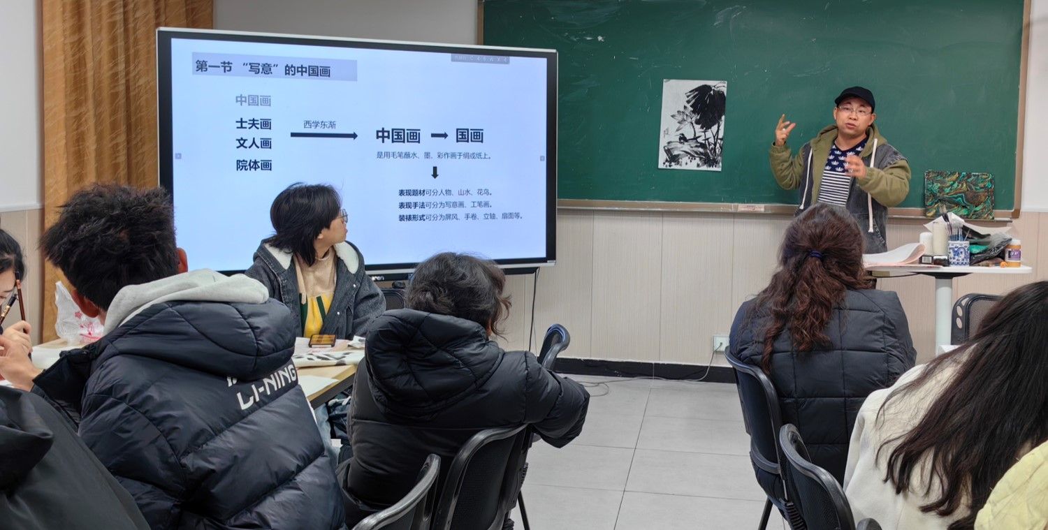 12月3日晚,菩提教室二,重庆对外经贸学院国画老师梁赵飞再次做客远景学院《艺术鉴赏与创意表达》课堂,与赵丹老师共同为远景学子带来了一堂国画体验课。国画与艺术通识课程会碰撞出什么样的火花呢?期待一下吧。