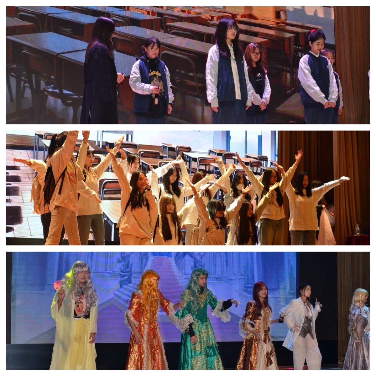 2023级英语四班为同学们献上一首合唱《微微》,用纯净的声音诠释歌曲的内涵;2023级英语八班以影视剧《家有儿女》为背景,通过幽默诙谐的对话和生动形象的表演,使得整部作品更加引人入胜;2023级英语二班用滑稽的表演和动人的剧情,为大家展现了一场不一样的《灰姑娘》。