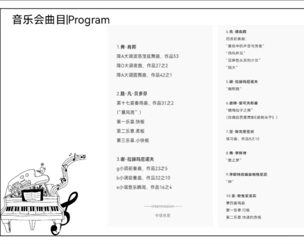 “结束了钢琴的演奏,现场响起雷鸣般的掌声,思绪一下被拉回了现实。好像经历了一场梦幻且不真实的梦,闭上眼睛,随着音符的旋律,打开一扇扇通往不同时空的门,既真实又虚幻。”