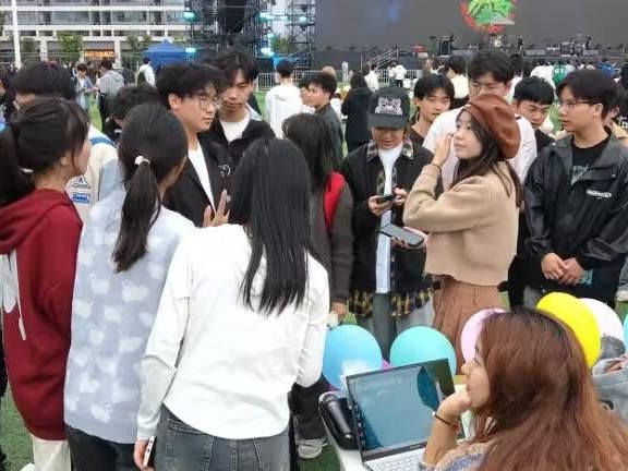 紧接着第二轮小游戏——“猜歌名”正式开始,音乐节舞台上的摇滚音乐也刺激着同学们兴奋的情绪,促进了现场活动氛围的活跃热闹。