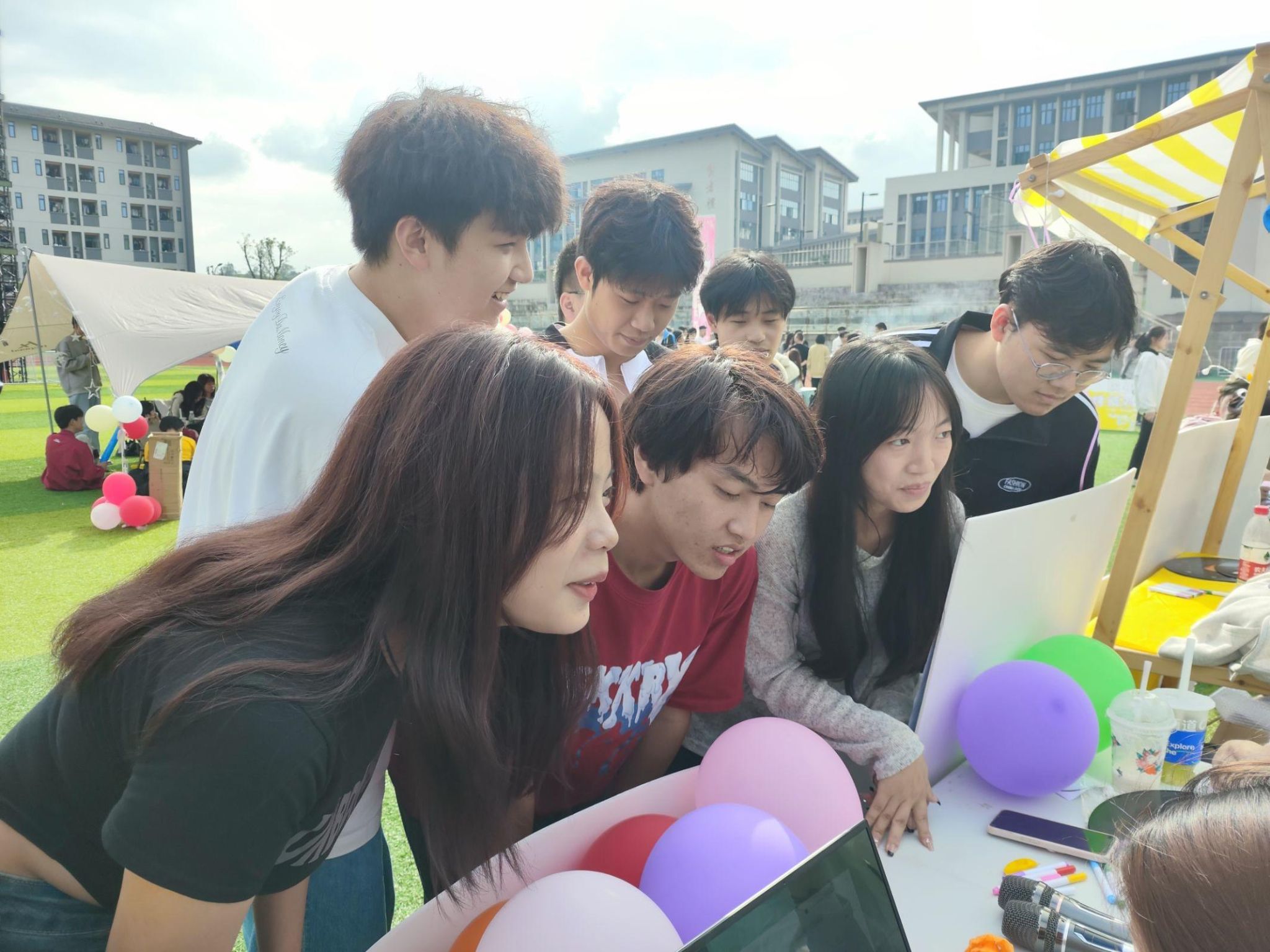 为丰富同学们的校园文化生活,提高同学们的艺术修养,促进音乐与文化的传播,让同学们感受到音乐的魅力,数字经济与信息管理学院于10月28日——10月29日在足球场举办了“掀起热潮,FUN肆嗨”校园音乐节外围活动,助力“古剑山国际音乐节”迎新晚会顺利开展。为营造校园音乐文化气息的氛围,提高同学们的音乐体验,本次活动通过歌曲接龙的形式,以轻松活跃的活动氛围,吸引了广大师生的积极参与,在音乐的歌声熏染下,活动现场一片欢声笑语,同学们脸上都洋溢着青春阳光的笑容。