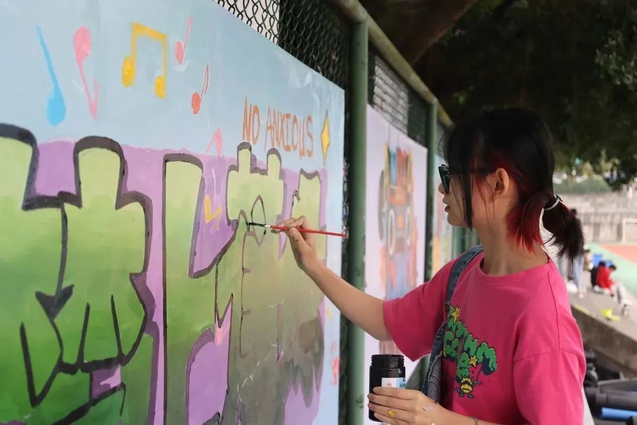 本次活动以“拥抱音乐,和蕉绿“say goodbye”为主题,在往年涂鸦主题上进行创新,紧密连接了当代大学生的焦虑情绪,不仅调节了校园音乐节的气氛,还释放了学生群体的“小情绪”。本次涂鸦活动以班级小组单位,每组人数5-8名学生,大家纷纷为音乐节此次绘制出属于了自己的色彩。至此在对同学们提出问题为什么会参与本次活动呢?大多数同学们纷纷回答参与本次活动的原因就是为丰富自身素养,体验丰富多彩的大学生活,提高艺术审美力,去发现和创造更多的艺术作品和美丽。