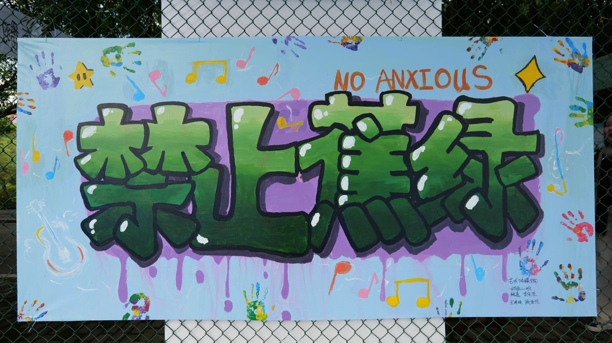 活跃校园气氛,拒绝焦虑,享受音乐带来的美好!为了渲染校园音乐节的活动氛围、丰富校园文化生活,10月16日,由艺术传媒学院团总支美宣部举办的音乐节大型涂鸦活动在南校区足球场拉开帷幕。
