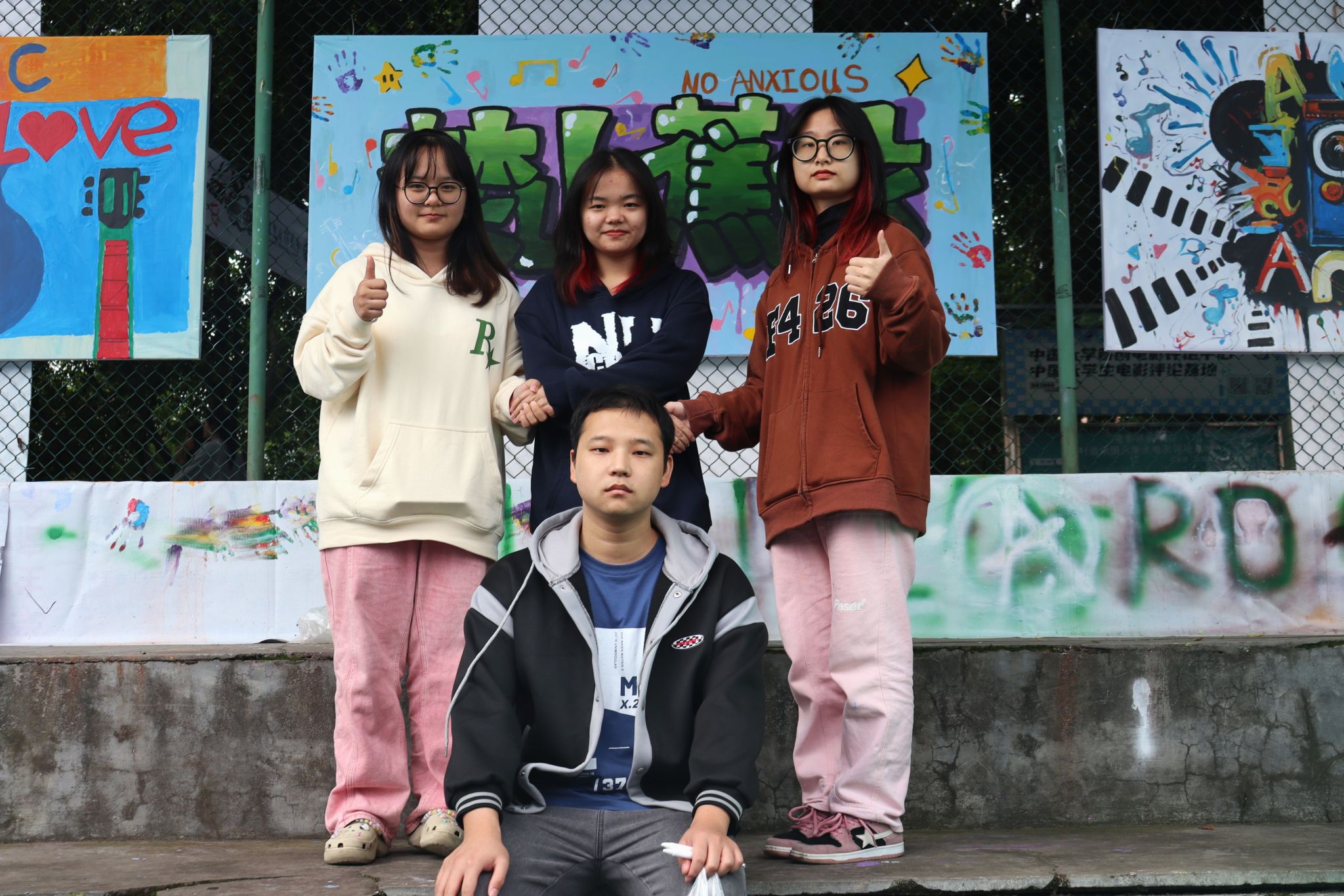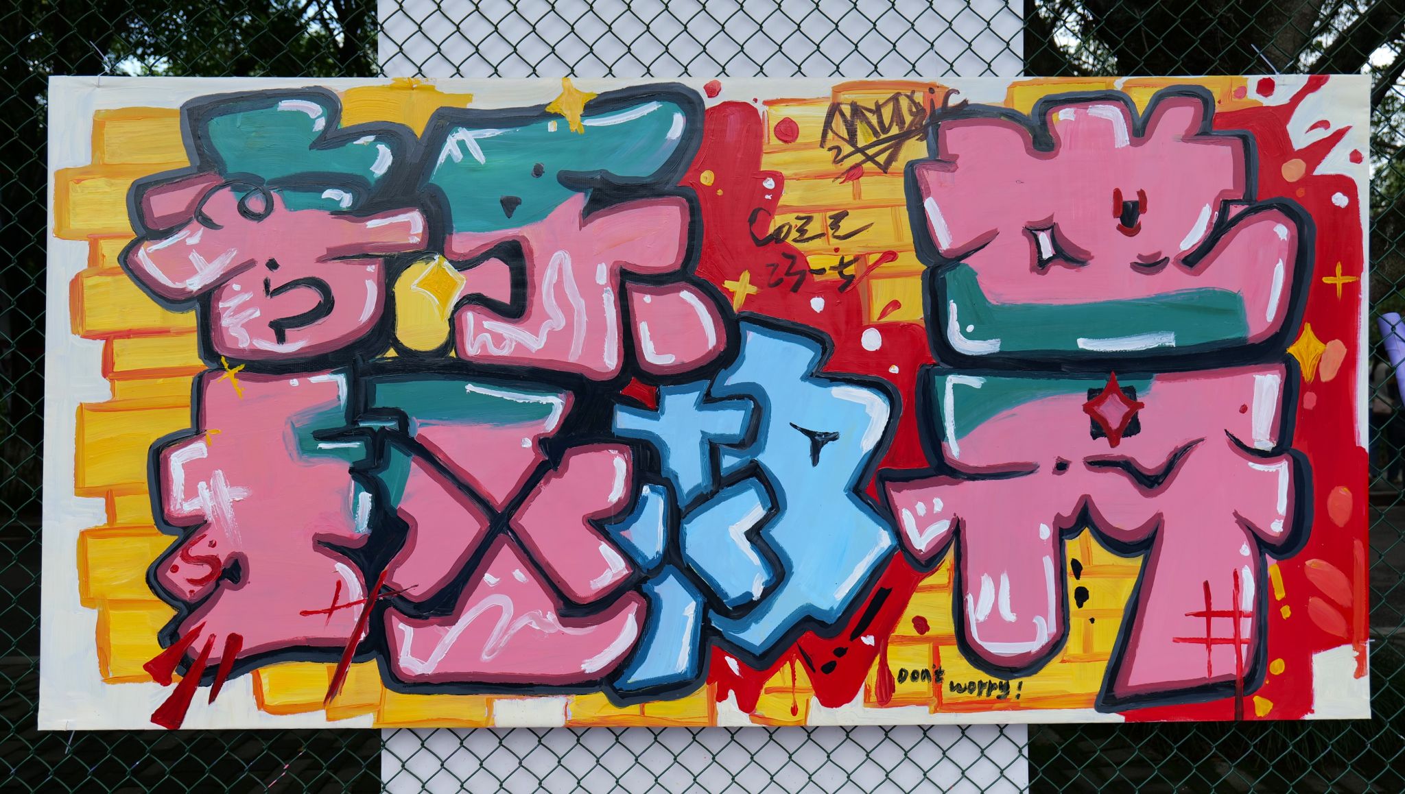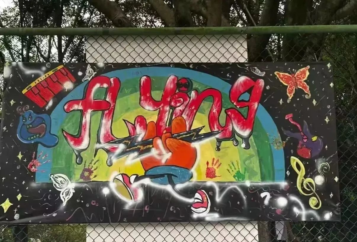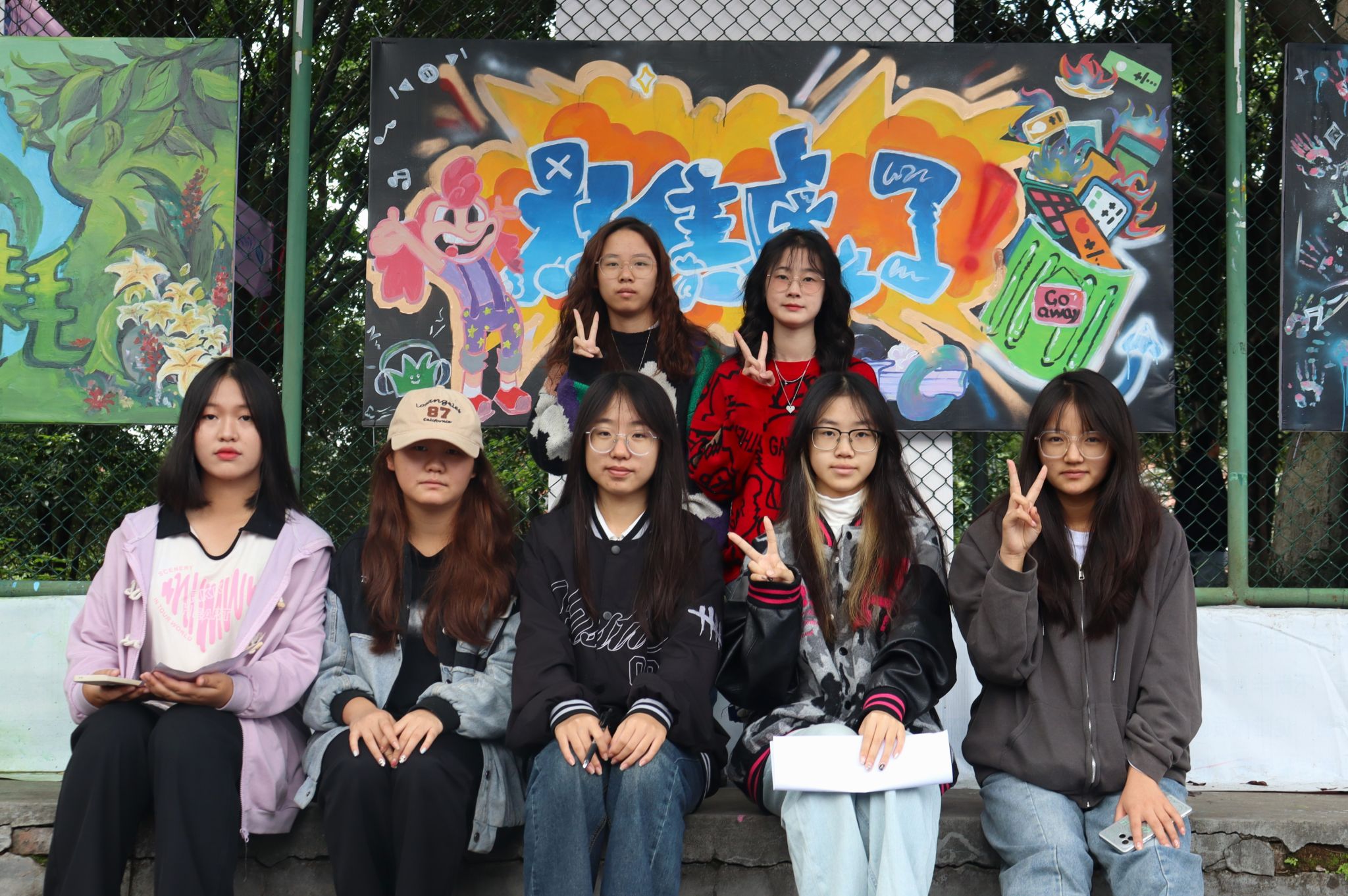 活动期间,大家大胆的提出自己的想法,在创作的过程中发挥自己的想象力,在小组里不断发挥自己的合作意识以及语言能力的表达。在询问同学们在此次活动中的收获,同学们更是说到交到了志同道合的朋友,能够用丰富多彩的涂鸦绘就别具韵味的艺术,让色彩与情感发生碰撞,利用人名、动漫角色、卡通等涂鸦作品表达自我。每当路过涂鸦作品,靓丽的颜色吸引了大量师生驻足欣赏,收获大片称赞声,各具风格的涂鸦作品成为了秋天最丰富的一抹色彩。