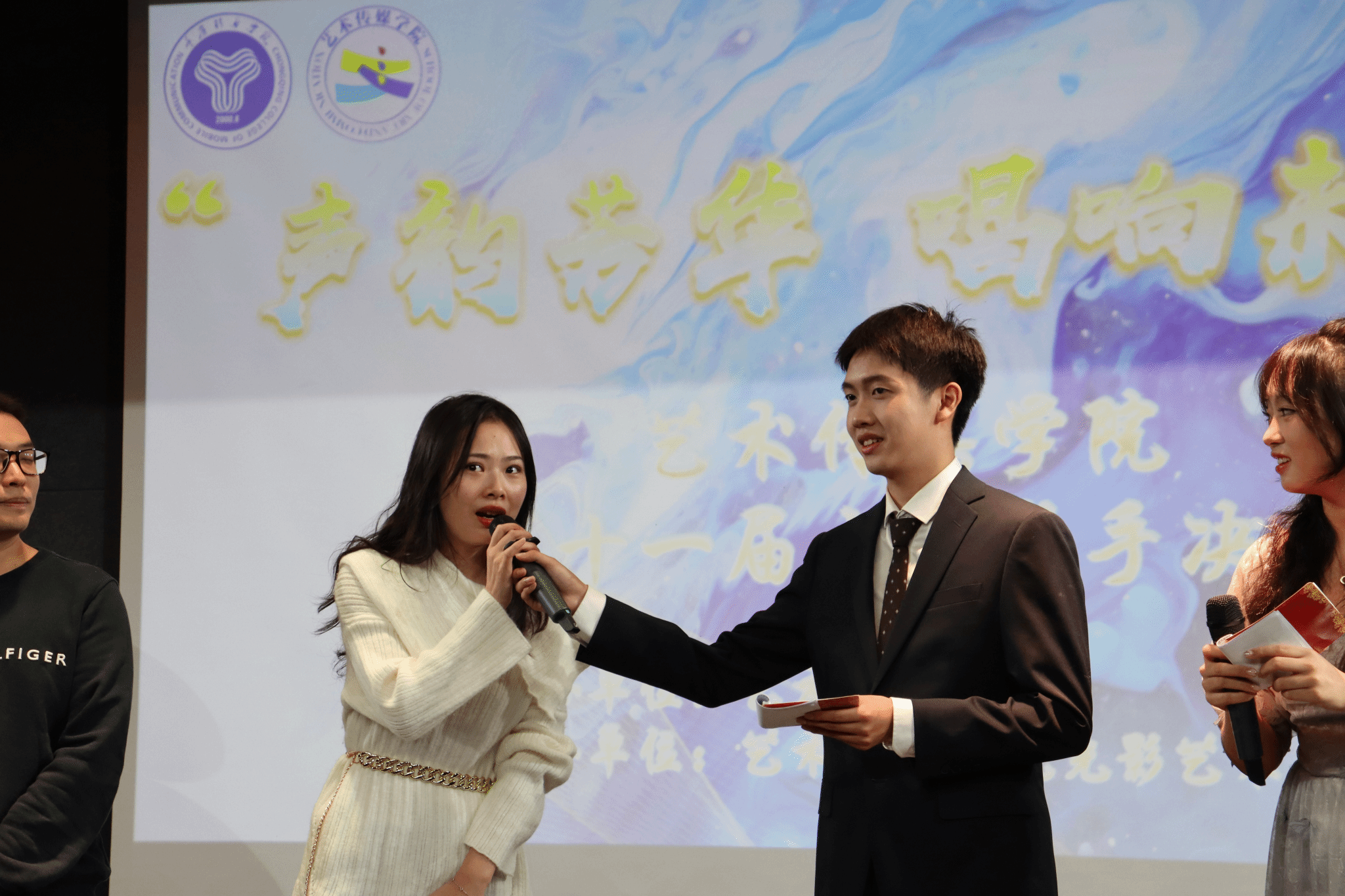 为了进一步丰富同学们的校园课余生活,为提供一个展示自我的舞台,培养多方面的人才,促进同学们对完满教育的参与,提高我校学生的综合素质。于2023年10月11日晚19:00由艺术传媒学院主办、光影艺术团承办的主题为“声韵芳华,唱响未来”第十一届十佳歌手大赛决赛在六度空间黑匣子剧场如约而至。