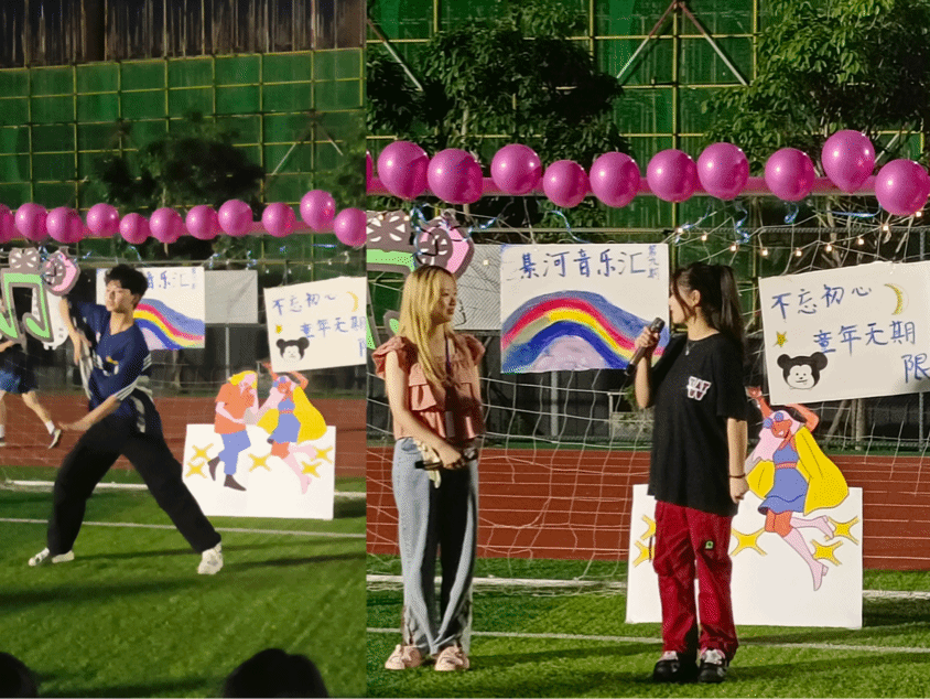 在2023年5月26日晚上20:00,重庆移通学院綦江校区大数据与计算机科学学院甲骨文艺术团在足球场成功举办了以“不忘初心,童心无极限”为主题的第九期綦河音乐汇。此次活动得到了学院学生们的积极响应与支持,现场热情高涨,气氛热烈,让我们一同回顾这场美妙的音乐之旅。