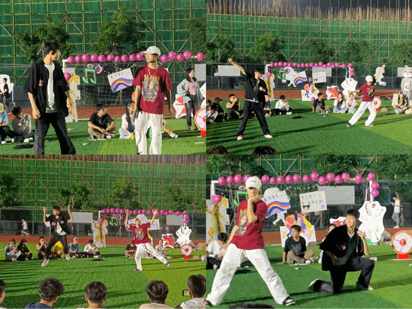 最后一个节目,是陈培凌同学和他的搭档带来的韩舞串烧表演,他们的舞步节奏鲜明,动作灵动,动人心魄,帅气至极,他们的舞步搭配相得益彰,一个转身、一个跳跃,舞步流畅自信,魅力四射,引得观众们纷纷鼓掌尖叫。