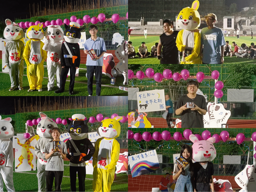 此次音乐汇以童年为主题,旨在呼吁大家不要忘记初心,保持童心,让我们在快节奏的生活中,重拾对美好事物的热爱和追求,让音乐这一艺术形式成为我们回归童年的桥梁。本次音乐汇的特别之处还在于有一群身着玩偶服的朋友们,在接下来的照片中,我们可见他们的活泼可爱、活跃氛围、参与活动的身影。