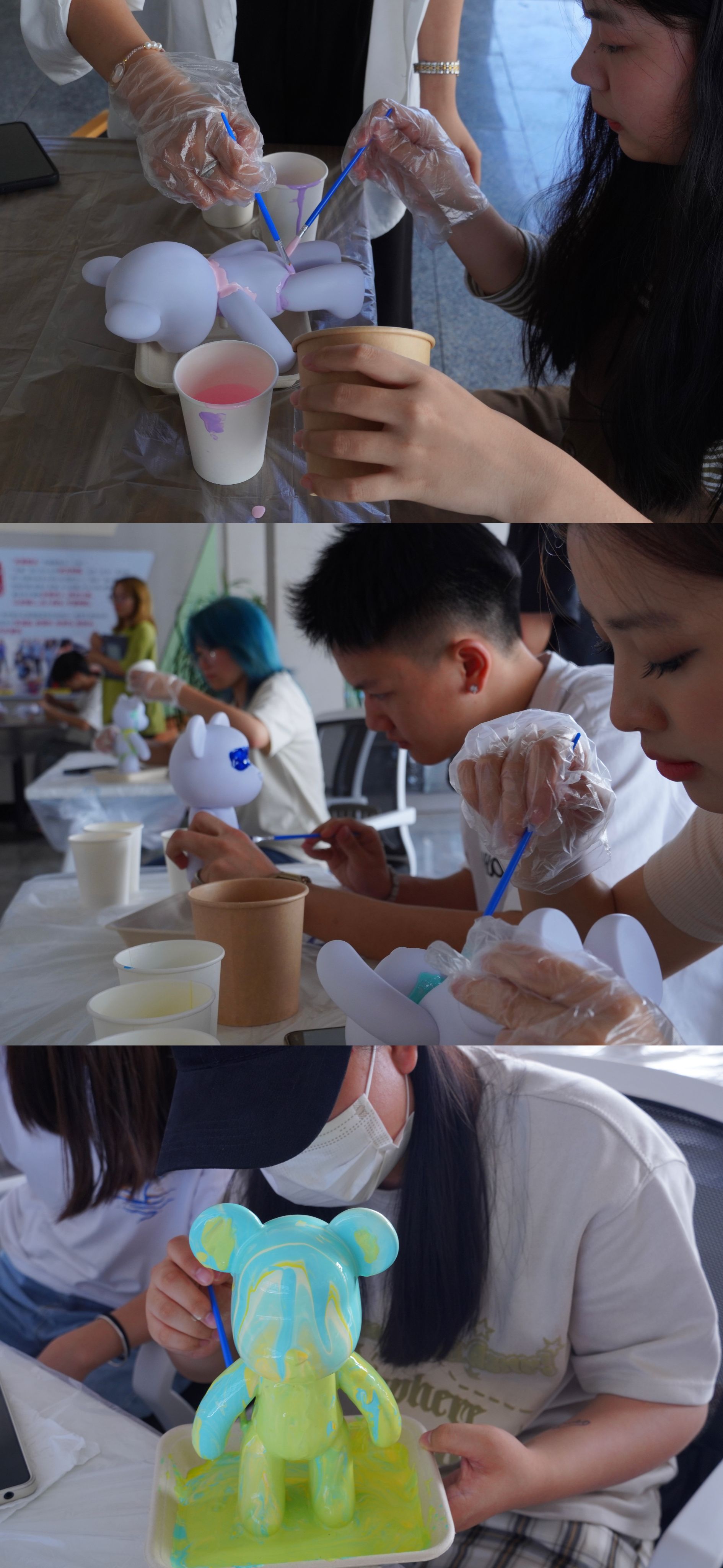 生活是五彩斑斓的,随处可见的都是充斥着颜色的物体。为丰富大学生的文化生活,提高大学生的艺术素养,激发大学生的创造力和想象力,给大学生带来了不一样的艺术体验,展现大学生的动手能力和创作能力,2023年5月24日由淬炼·国际商学院Venus艺术团主办的“流体熊”活动在綦河书院几何空间顺利展开。