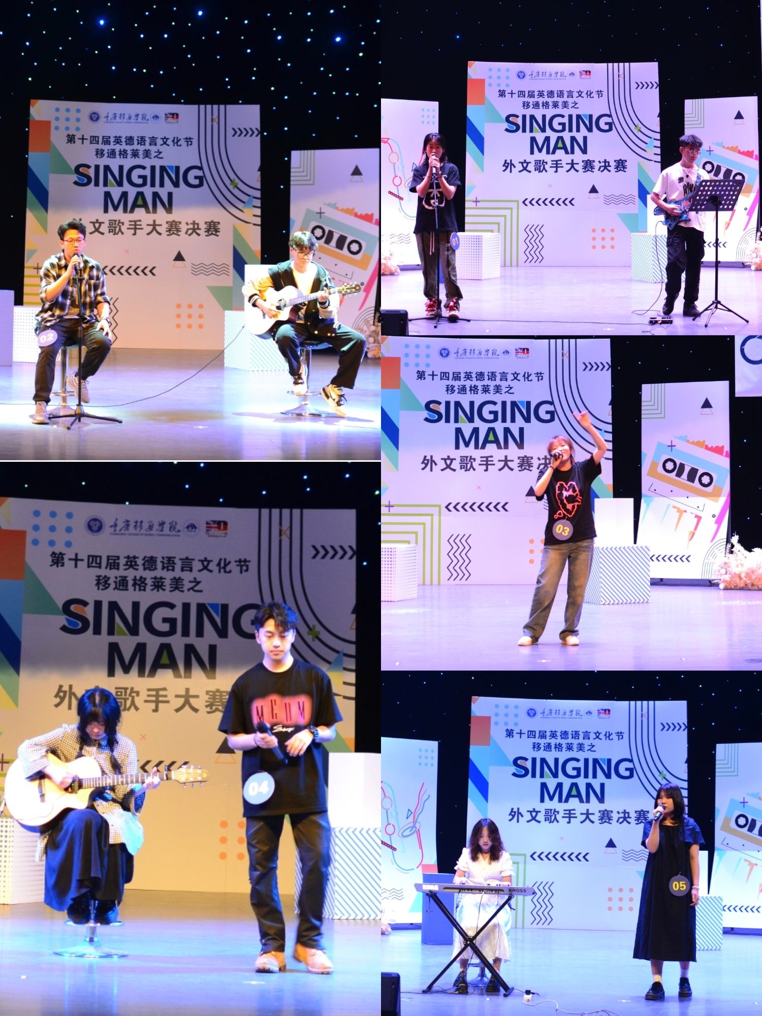 赴一次歌声的盛宴,应一场青春的邀约,因“韵”而生的热情,翩若惊鸿的相遇,也许就是很多人向往的山川湖海、星辰漫天。2023年5月12日,由艺术教育中心主办,外国语学院学生会承办的第十四届英德语言文化节移通格莱美之“Singing Man”外文歌手大赛决赛在缤果大剧院隆重举行。