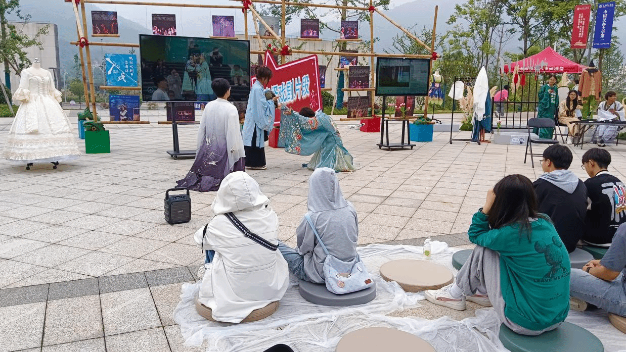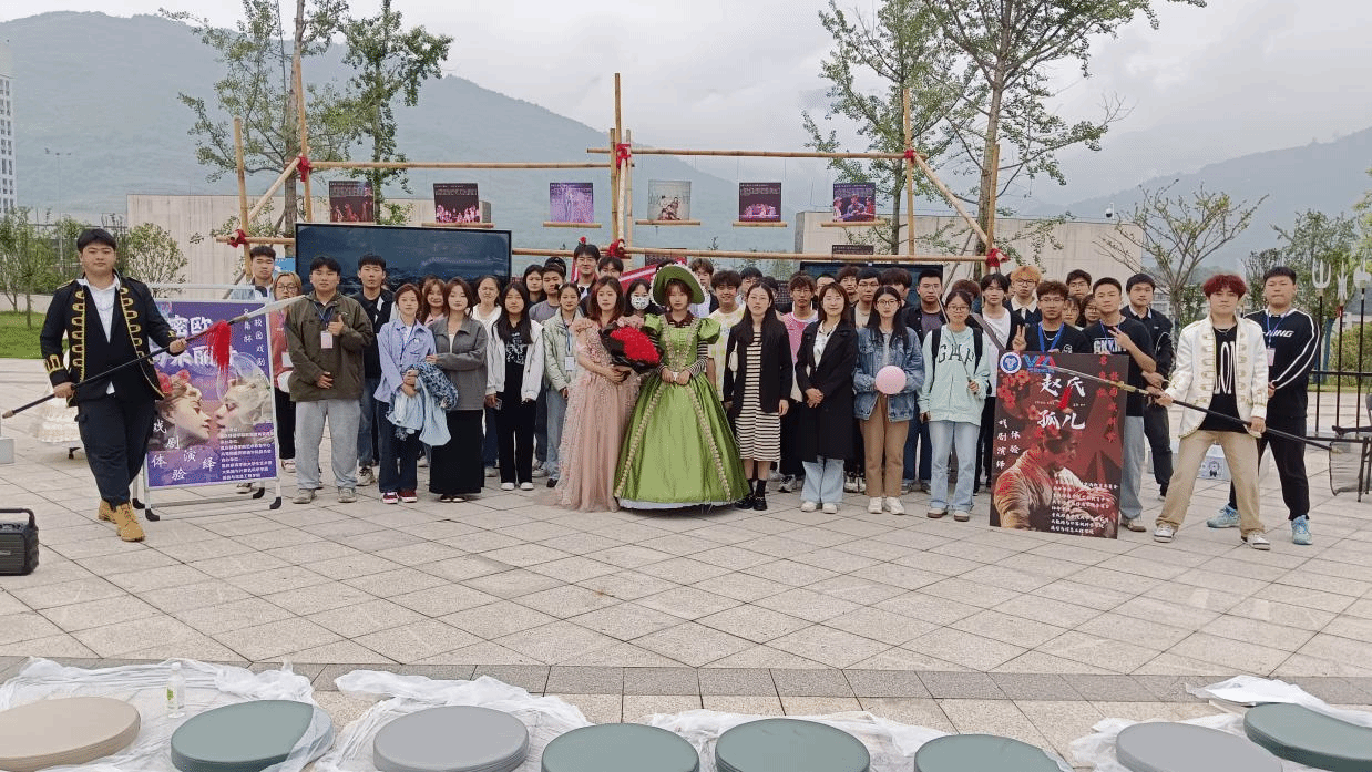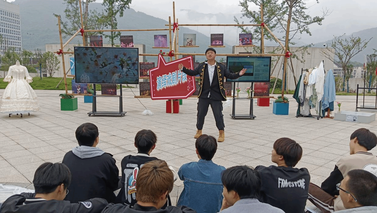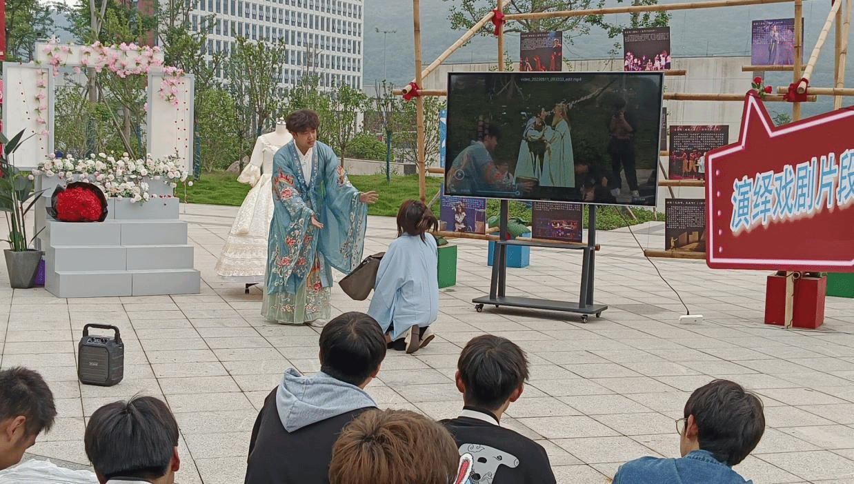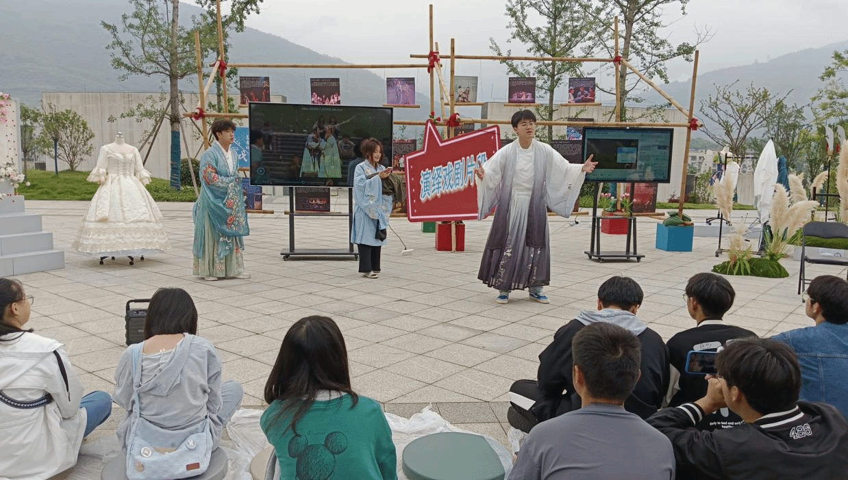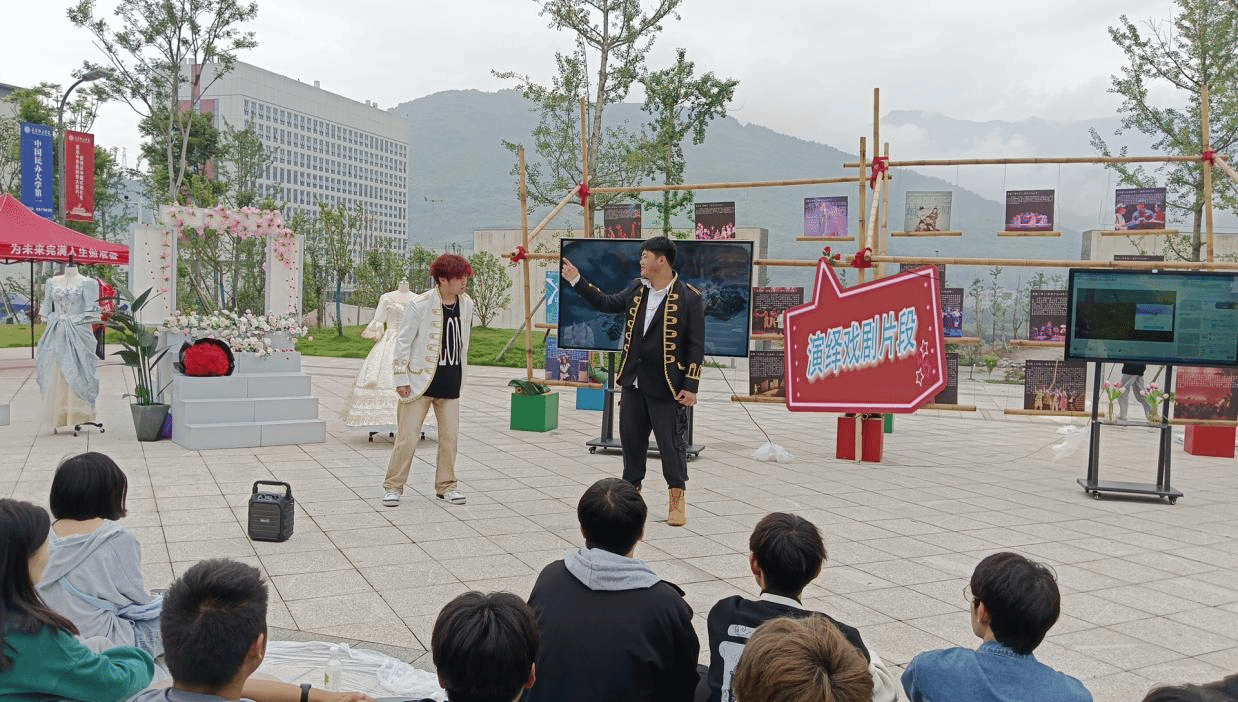 泼一抹墨色,国风脉脉,调几声弦音,民韵悠悠。用艺术点缀我们的生活,让文化丰富我们的心灵。响应国家实行素质教育的号召,提高同学们的艺术修养,增强同学们的审美能力与艺术鉴赏能力,同时在舞台交于同学们自己的前提下,锻炼和增强同学之间团队合作、交流互鉴、共商共赢的能力,我校在本月全体师生范围内开展2023“名角杯”戏剧节系列活动。由大数据与计算机科学学院的甲骨文艺术团和通信与信息工程学院艺术团,于5月11日中午在微风空间校正门口举办了戏剧演绎片段展示活动。