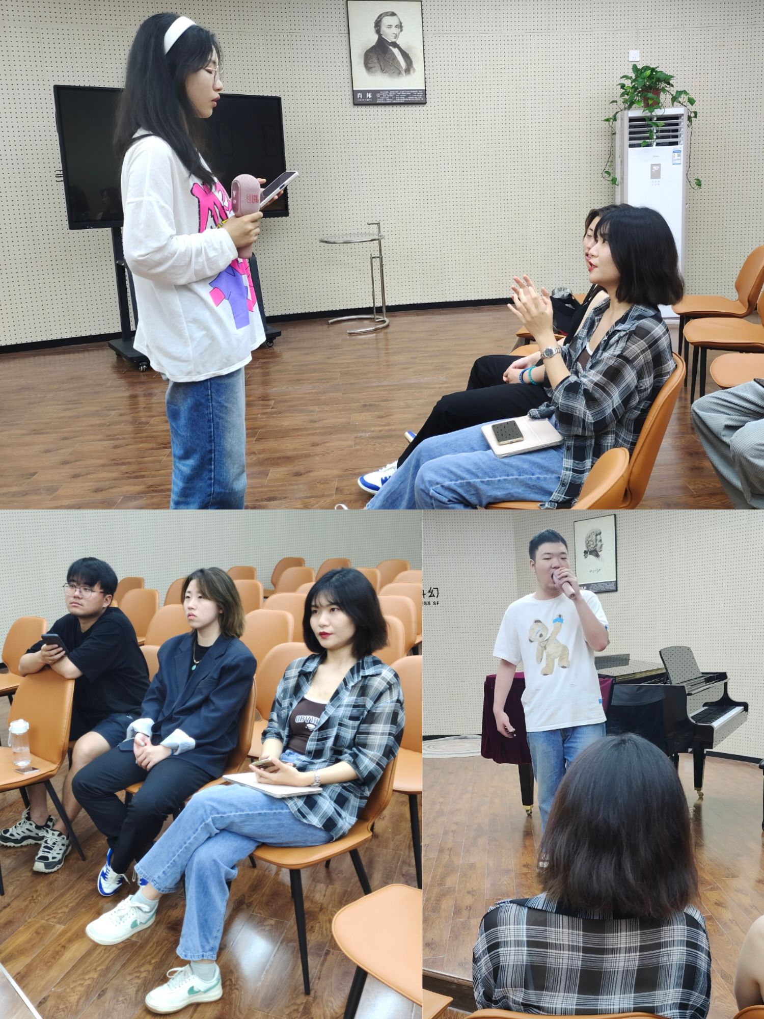 为更好地展现同学们的歌唱实力和舞台张力,提升舞台效果,2023年5月5日14:30,外国语学院特邀请科幻学院器乐方向教师刘然老师与舞蹈指导李玟谕老师于天空书院五楼钢琴教室,对第十四届英德语言文化节移通格莱美之“Singing Man”外文歌手大赛决赛的12名选手进行声乐与舞台动作方面的赛前指导。